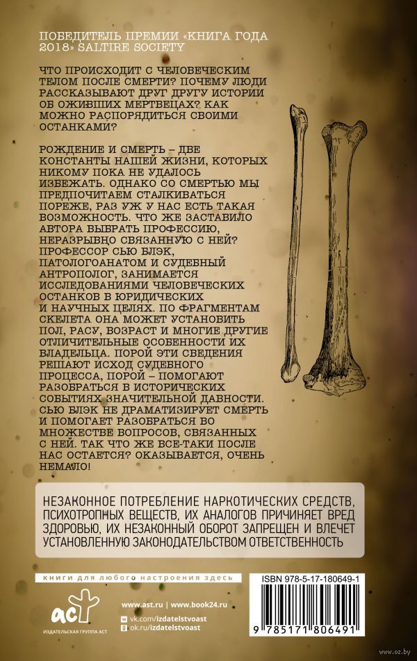 Сью Блэк не драматизирует смерть и помогает разобраться во множестве вопросов, связанных с ней. Так что же все-таки после нас остается? Оказывается, очень немало!