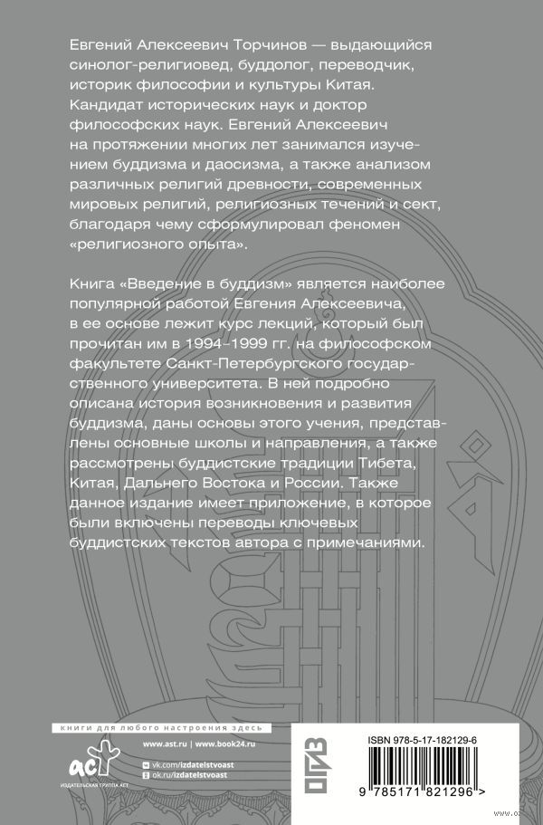 Евгений Алексеевич Торчинов – выдающийся синолог-религиовед, буддолог, переводчик, историк философии и культуры Китая. Кандидат исторических наук и доктор философских наук. Евгений Алексеевич на протяжении многих лет занимался изучением буддизма и даосизма, а также анализом различных религий древности, современных мировых религий, религиозных течений и сект, благодаря чему сформулировал феномен "религиозного опыта".