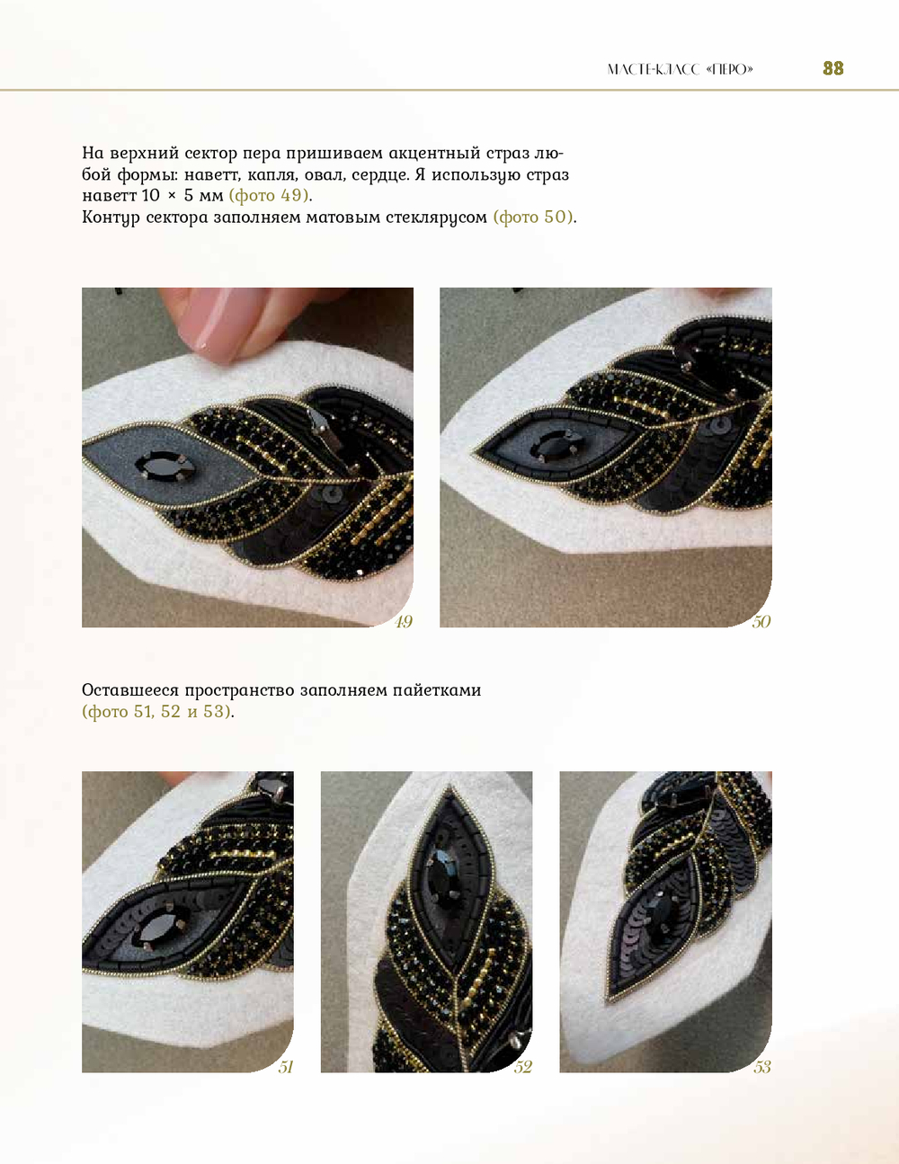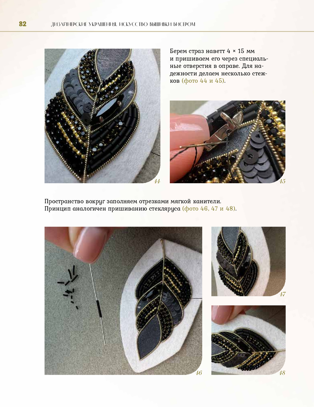 Автор рассказывает, как выбирать материалы и инструменты, формировать объем, переводить изображение, работать с канителью, бисером, пайетками, обрабатывать край и создавать аккуратную изнанку.