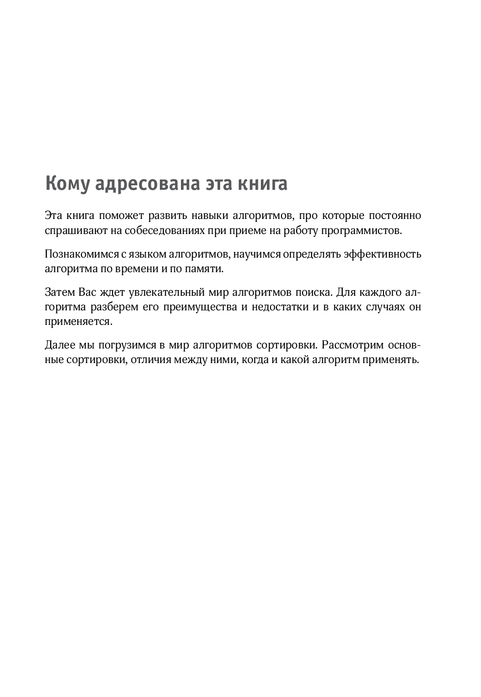 Алгоритмы – ключ к работе программиста. Эффективный код и решение любых практических задач основываются именно на них. Эта книга – практическое руководство по алгоритмам для программистов, готовящихся к собеседованиям и стремящихся углубить свои знания.