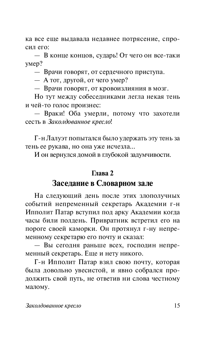 Освободилось сороковое место в Академии, среди множества претендентов необходимо выбрать самого достойного. Однако после смерти трех кандидатов число желающих заметно убавилось. Ходят слухи о проклятии, наложенное на "заколдованное кресло". Удастся ли кому-нибудь избежать смерти или это место будет вечно пустовать?..