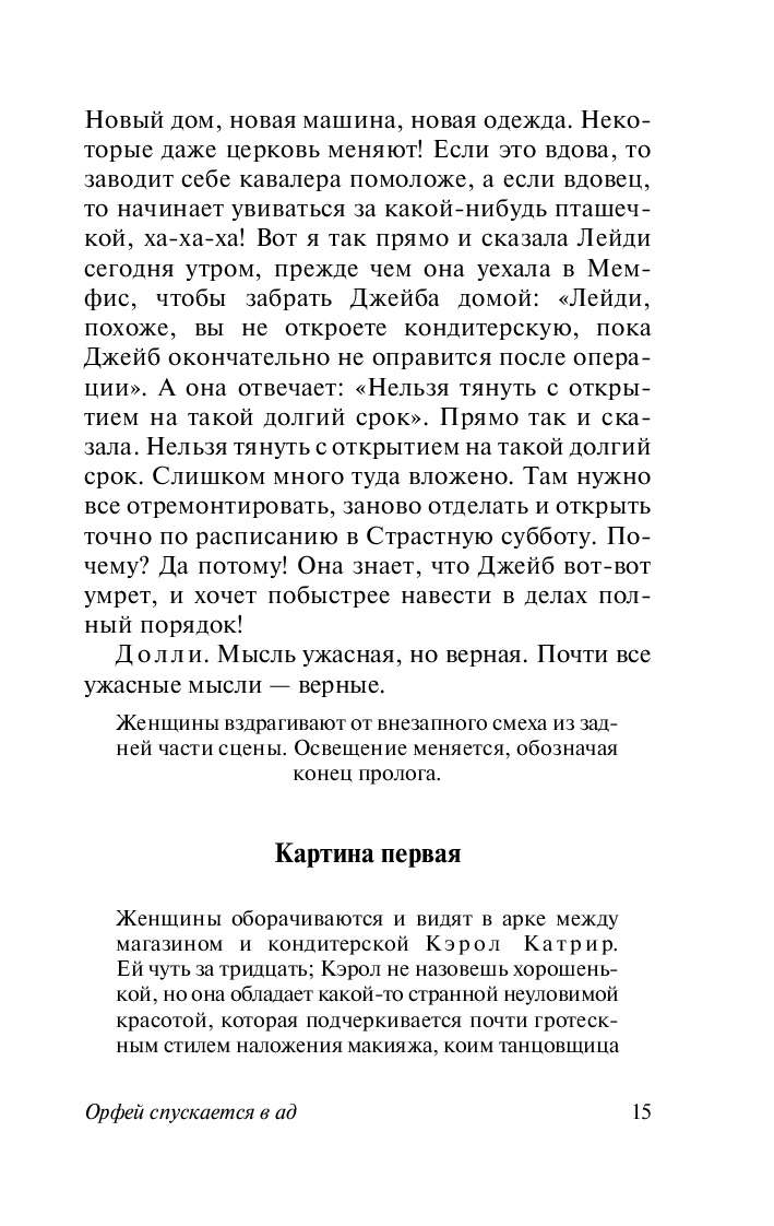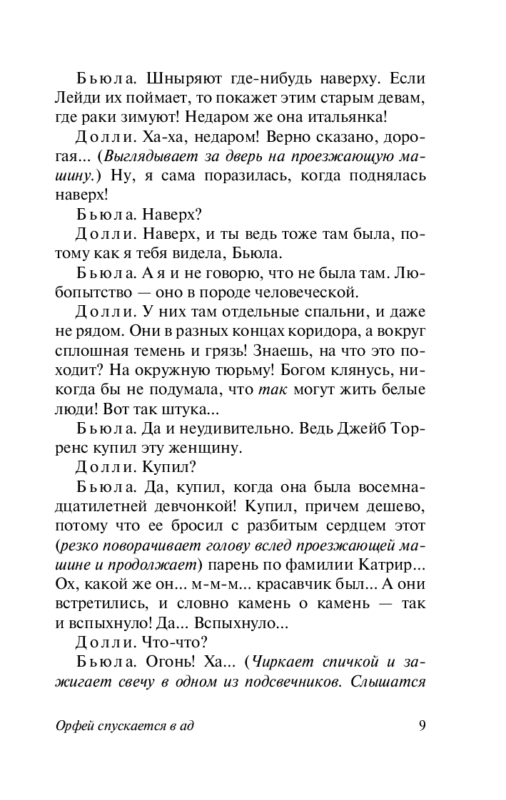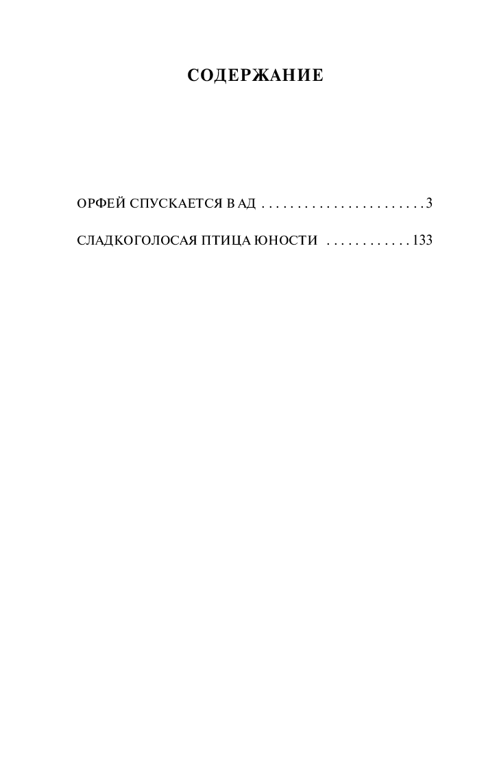 В этот сборник вошли две легендарные пьесы Теннесси Уильямса: "Орфей спускается в ад" и "Сладкоголосая птица юности", объединенные темами разрушительной любви и пугающего одиночества в толпе.