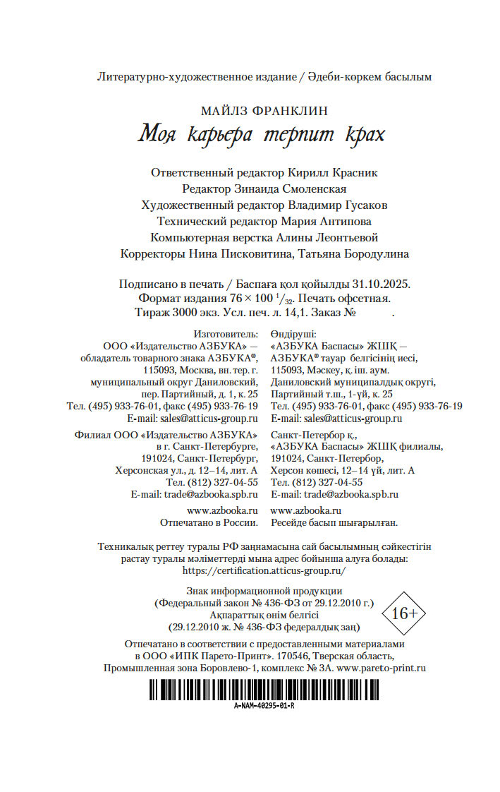 | Изготовитель | ЗАО "Азбука". 198096, РФ, г. Санкт-Петербург, ул. Решетникова, д. 15 |