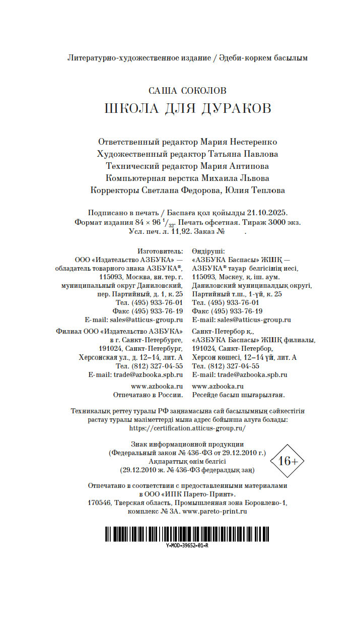 | Изготовитель | ЗАО "Азбука". 198096, РФ, г. Санкт-Петербург, ул. Решетникова, д. 15 |