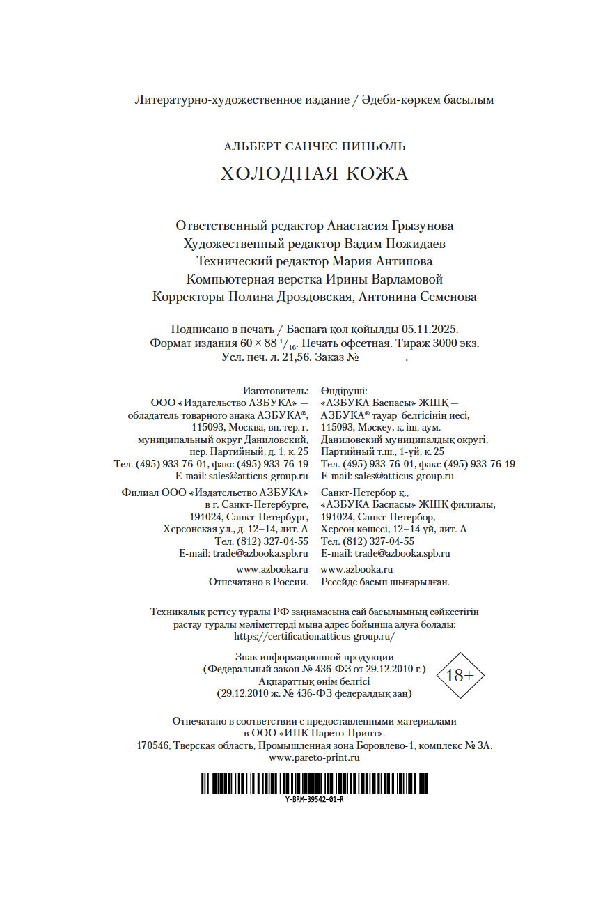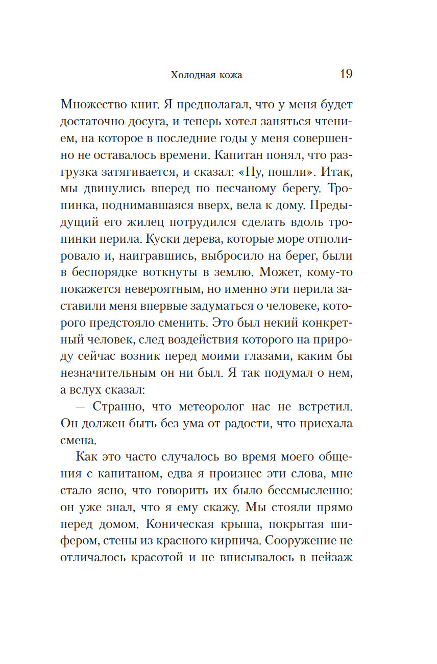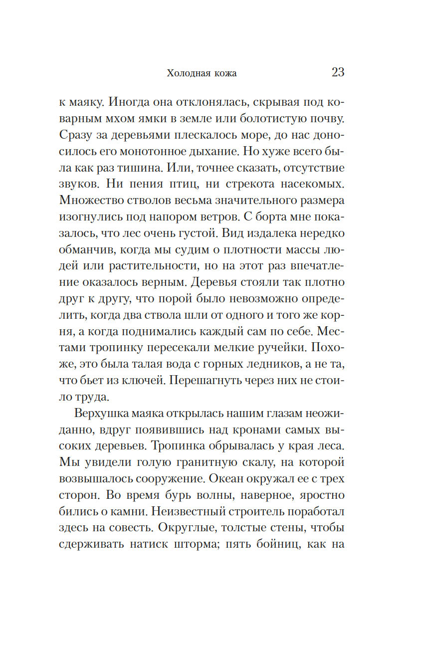 Альберт Санчес Пиньоль – ученый-антрополог, одна из крупнейших и наиболее самобытных звезд каталанской литературы. Он творец удивительных миров, в которых перемешивается реальное и фантастическое, а человек снова и снова сталкивается с Иными в лучших традициях Лавкрафта, Конрада и Стивенсона. "Холодная кожа", первый роман Санчеса Пиньоля, стал сенсацией в 2002 году, выдержал уже около тридцати переизданий в Испании и Каталонии, переведен на 37 языков и с успехом экранизирован Ксавье Жансом (в российском прокате этот фильм 2017 года выходил под названием "Атлантида"). Снова и снова с наступлением ночи дети моря выходят на берег, но кто здесь Иные – они, пришедшие из черноты океана, или мы, носители представлений о цивилизации, неспособные увидеть в Ином живого?