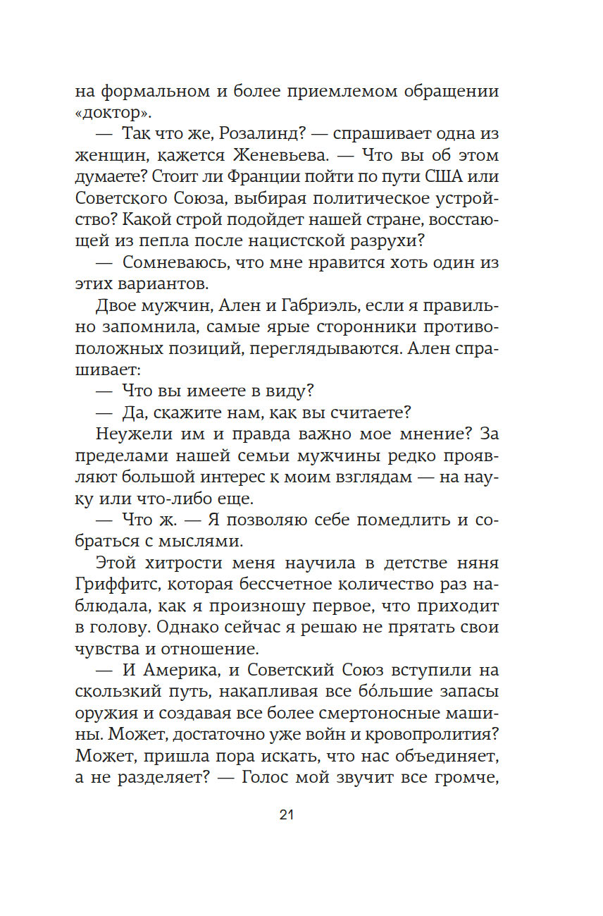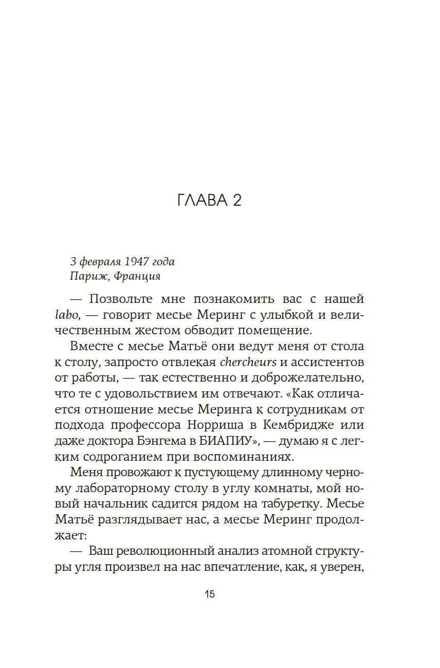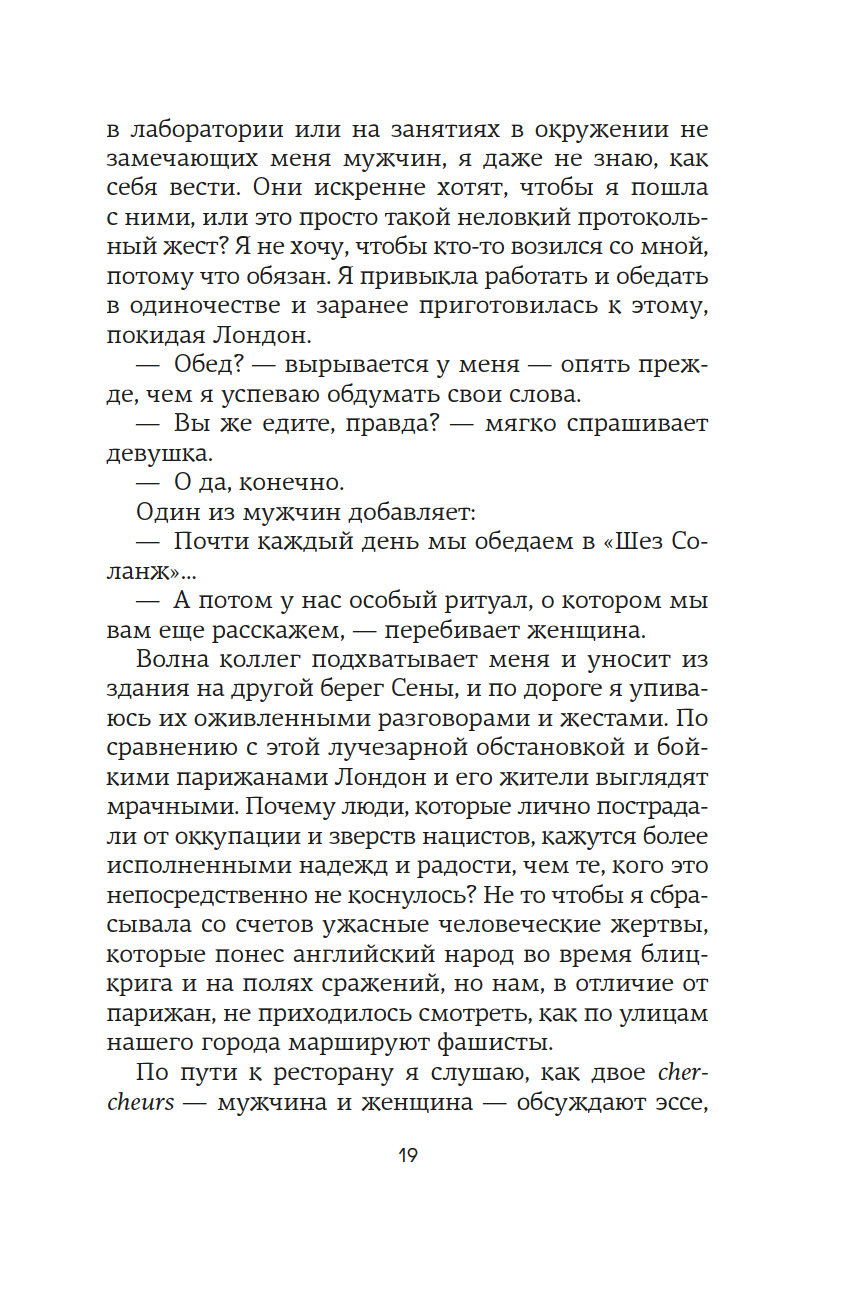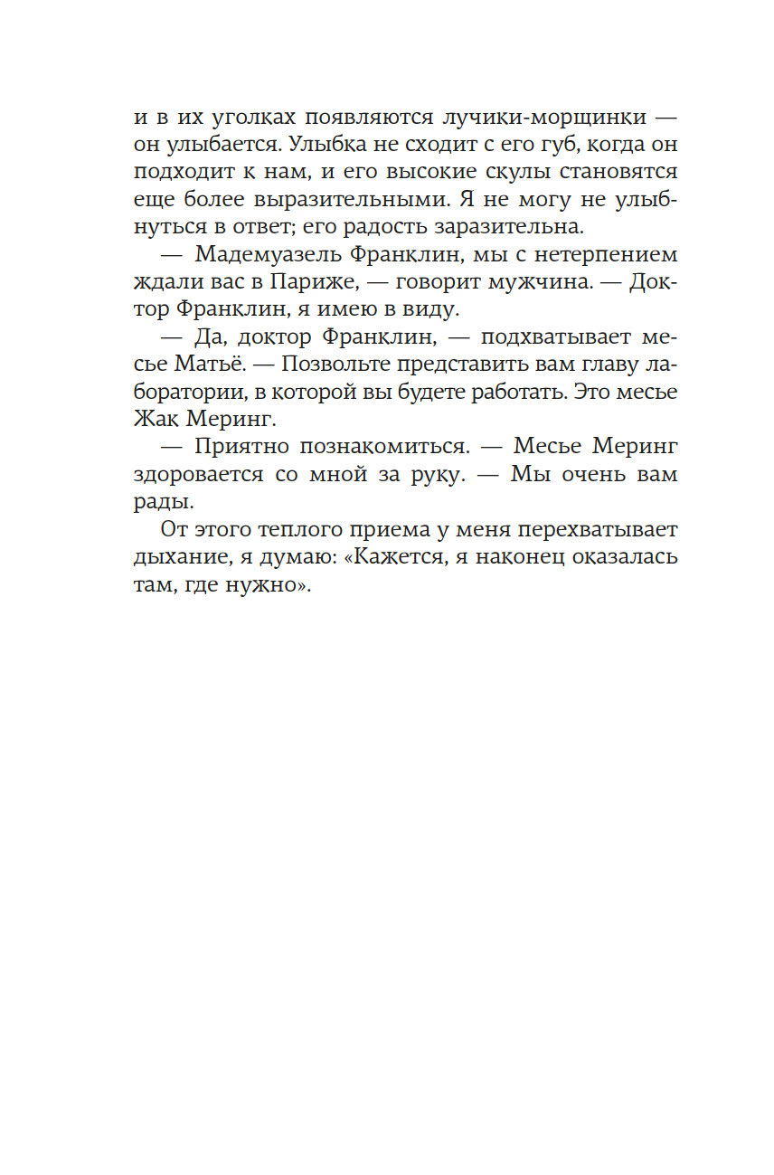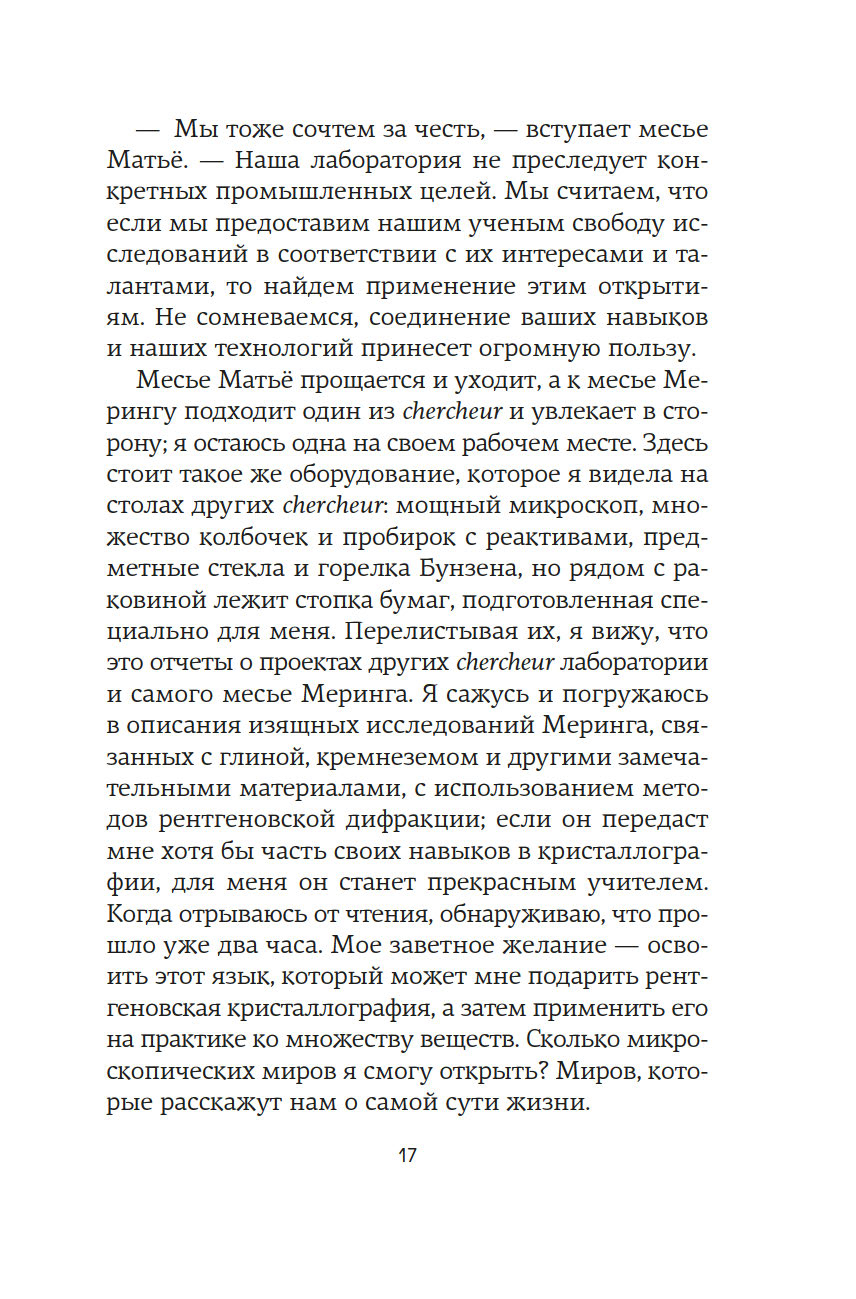 Англия. 1950-е годы. В тесных лабораториях Королевского колледжа разворачивается безжалостная гонка. На кону ни больше ни меньше – Нобелевская премия за открытие структуры ДНК. Блестящий биофизик Розалинд Франклин – первая, кто получает четкое изображение таинственной молекулы жизни. Она уверена, что победит, и играет по-честному. Но миру науки, в который она попадает после поспешного отъезда из Франции, чужда честность. Зато не чуждо тщеславие. Коллеги-мужчины видят в методичности Розалинд лишь досадное препятствие на пути к заветной славе. Морис Уилкинс, уязвленный успехами ученого, уже ищет союзников, а в Кембридже амбициозные Джеймс Уотсон и Фрэнсис Крик вовсю плетут интриги. Втроем они спешат построить модель ДНК и навсегда вписать свои имена в историю, оставив гений Розалинд скрытым от мира. Мари Бенедикт, автор многочисленных бестселлеров, переведенных на три десятка языков, написала роман о выдающейся женщине, расшифровавшей одну из главных загадок Вселенной, и о горькой цене, которую ей пришлось за это заплатить.