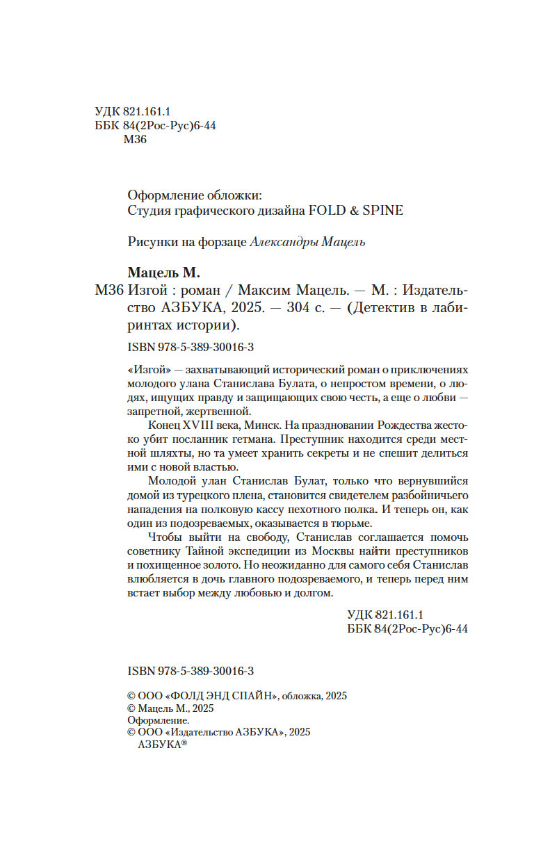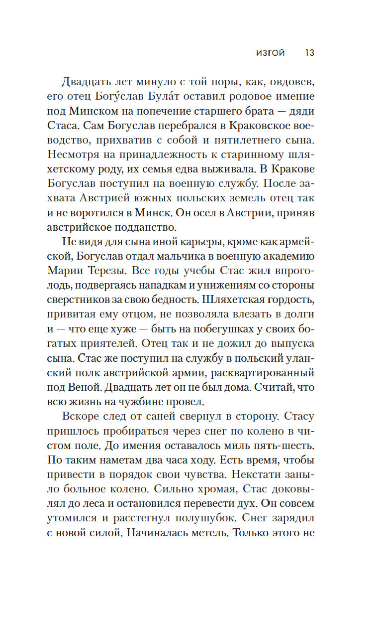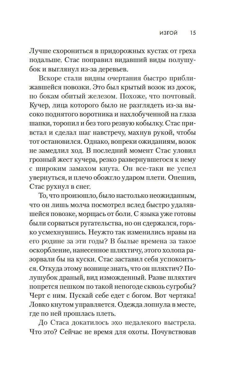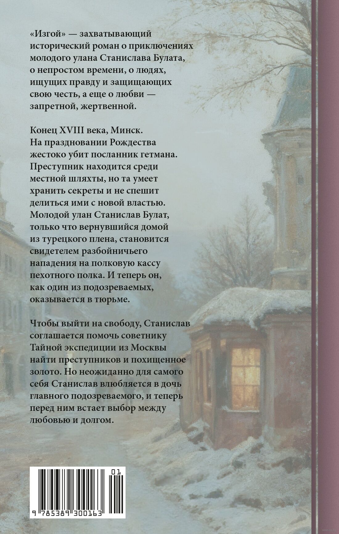"Изгой" – захватывающий исторический роман о приключениях молодого улана Станислава Булата, о непростом времени, о людях, ищущих правду и защищающих свою честь, а еще о любви – запретной, жертвенной.
