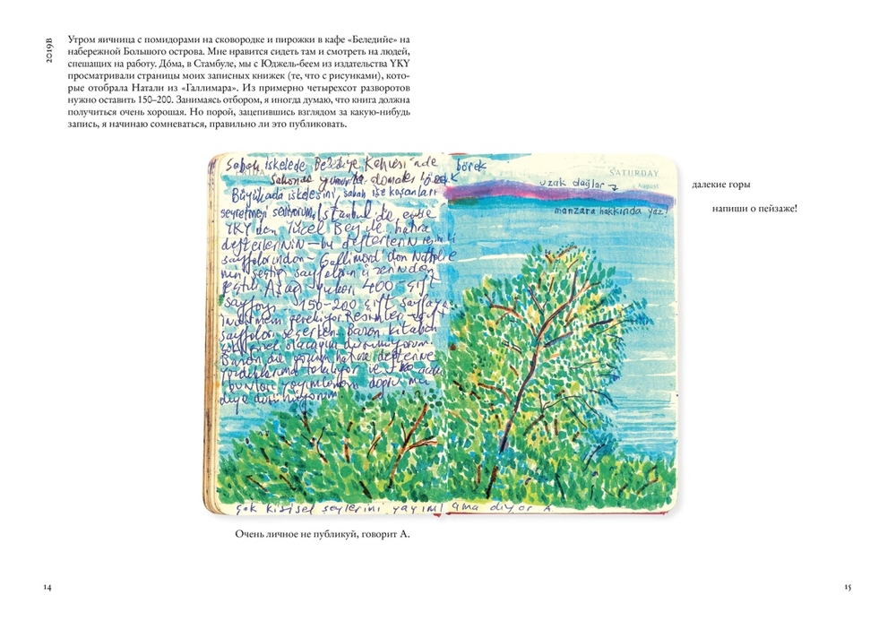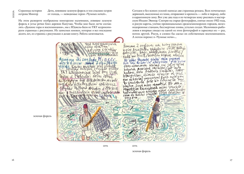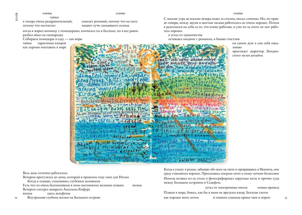Записные книжки Орхана Памука не только позволяют прикоснуться к внутреннему миру любимого писателя, но и являются подлинным произведением искусства, где рисунок и текст неотделимы друг от друга, как неотделимы человек и его воспоминания.