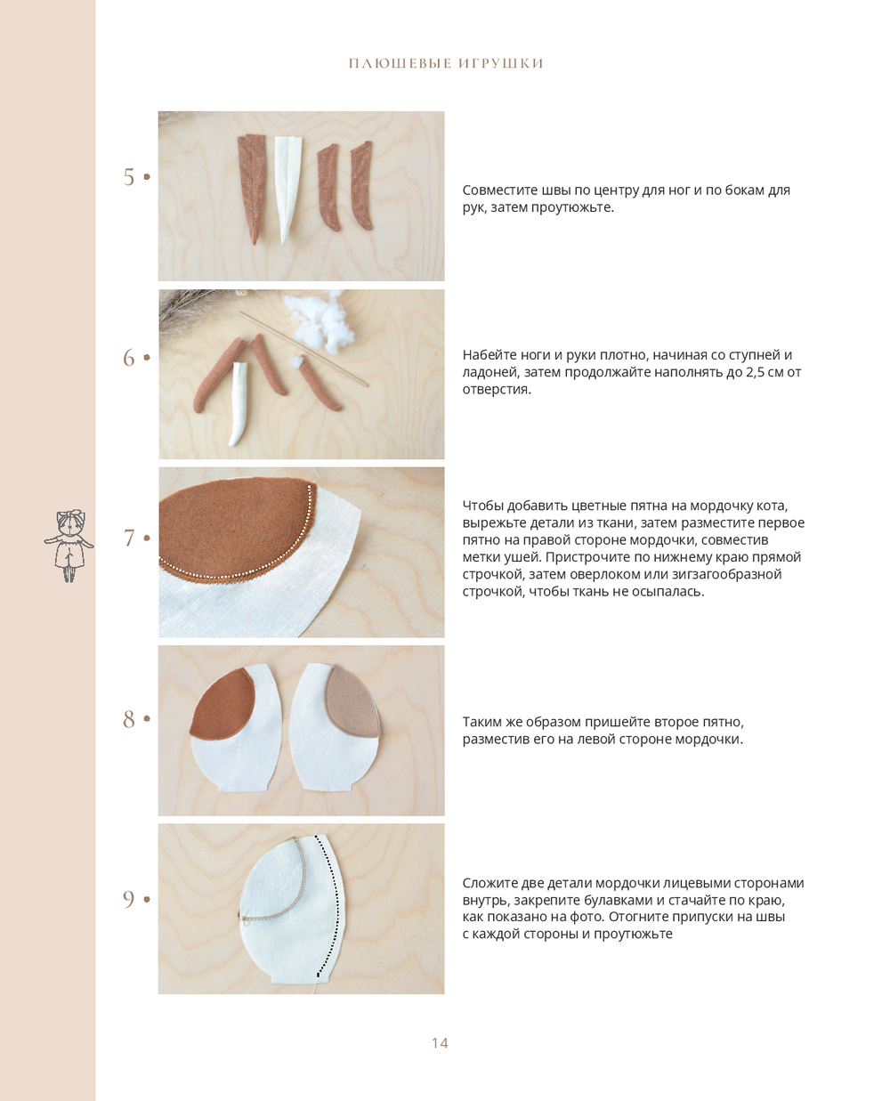 С первой же страницы вы приступите к созданию игрушек: пушистых котов, уютных зайчат, веселых щенков и других милых персонажей. Каждый мастер-класс – это четкие инструкции, качественные фотографии и советы, которые помогут избежать ошибок. Вы узнаете, как подобрать ткань, сделать аккуратные швы и оформить мордочку, чтобы игрушка получилась выразительной.