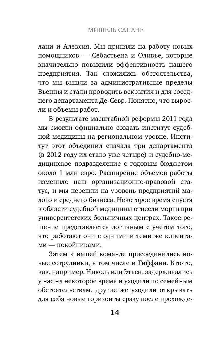 В этой книге вы станете свидетелем сцен преступлений, проведете судебно-медицинские экспертизы, посетите следственные эксперименты и судебные заседания с участием присяжных. Ее автор Мишель Сапане – неординарный судмедэксперт, который за 30 лет своей работы повидал уже многое. Каждое дело он описывает с изящным черным юмором, погружая читателя в рутинные для судмедэксперта приключения. Главный принцип, которым руководствуется Сапане, – любопытство должно быть удовлетворено. И почти каждое дело, упомянутое в книге, находит свое логическое завершение в зале суда.