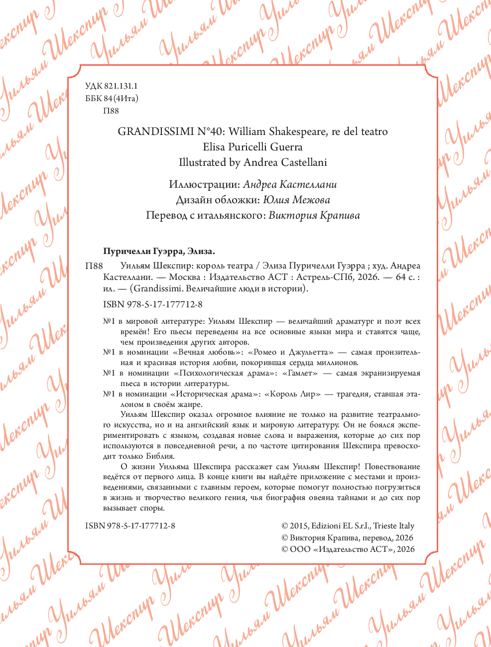 О жизни Уильяма Шекспира расскажет сам Уильям Шекспир! Повествование ведётся от первого лица. В конце книги вы найдёте приложение с местами и произведениями, связанными с главным героем, которые помогут полностью погрузиться в жизнь и творчество великого гения, чья биография овеяна тайнами и до сих пор вызывает споры.