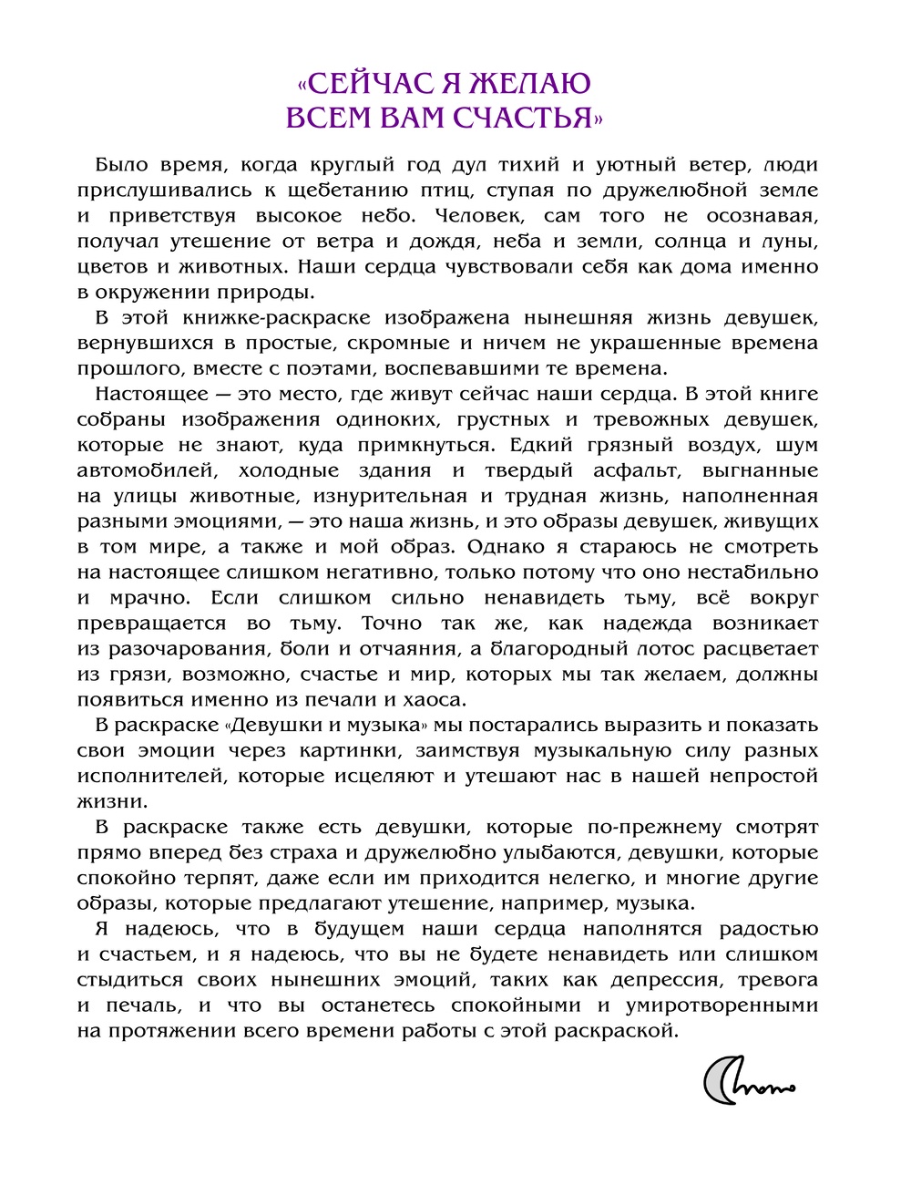 В "Девушки и музыка. Раскраска" вас ждут истории героинь, сопровождаемые 36 музыкальными композициями и текстами песен, способными подарить душе утешение и покой.