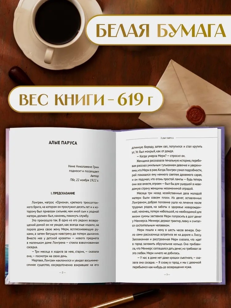 "Алые паруса" – повесть-феерия, которую писатель посвятил своей второй жене. Эта история о мечте и вере в настоящее чудо. Главная героиня, Ассоль, живет в маленьком приморском городке. В младенчестве она потеряла мать, из близких у нее остался только отец. В родном городе нет человека, который бы согрел ее сердце. Ассоль уверена, что когда-нибудь в гавани увидит корабль с большими алыми парусами, а на нем – своего принца, который увезет ее в счастливую жизнь.