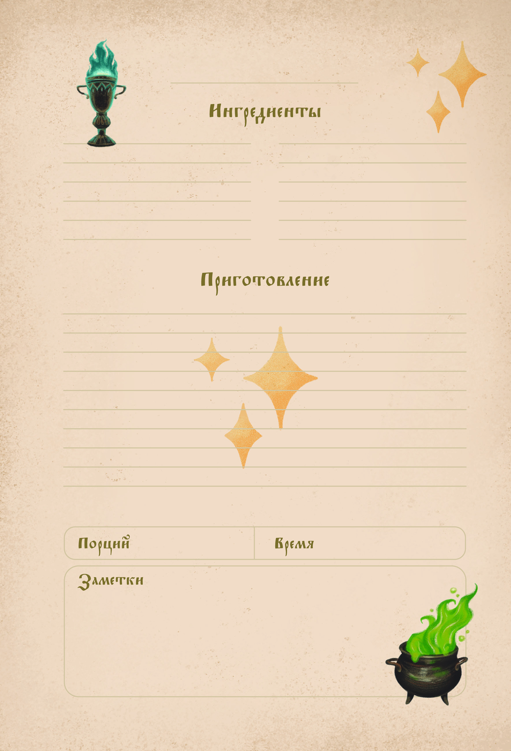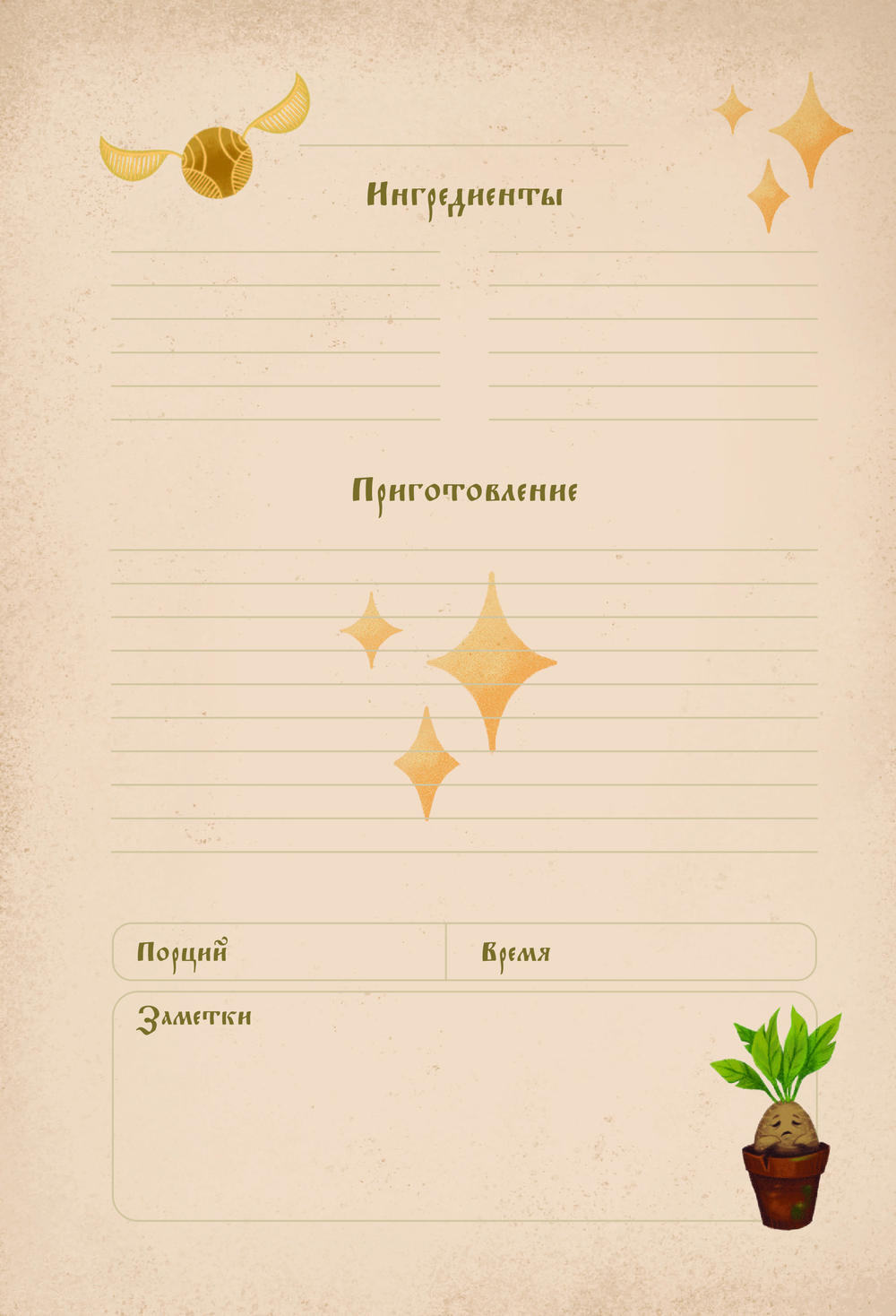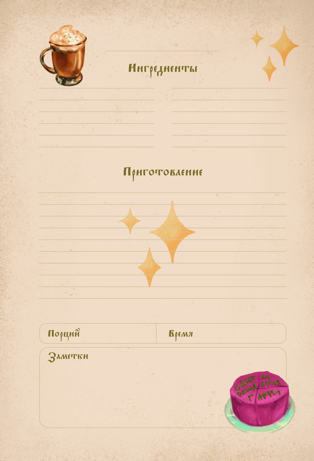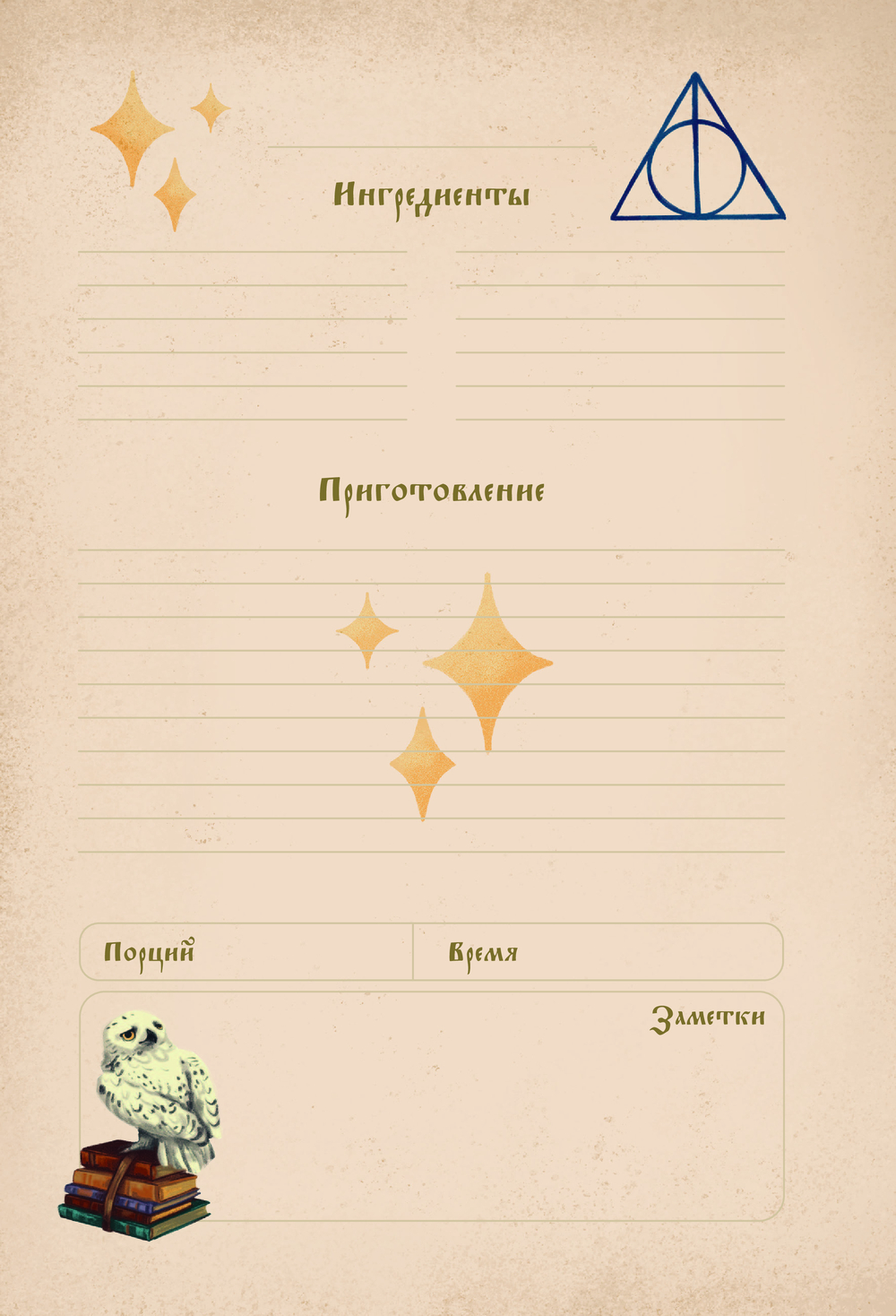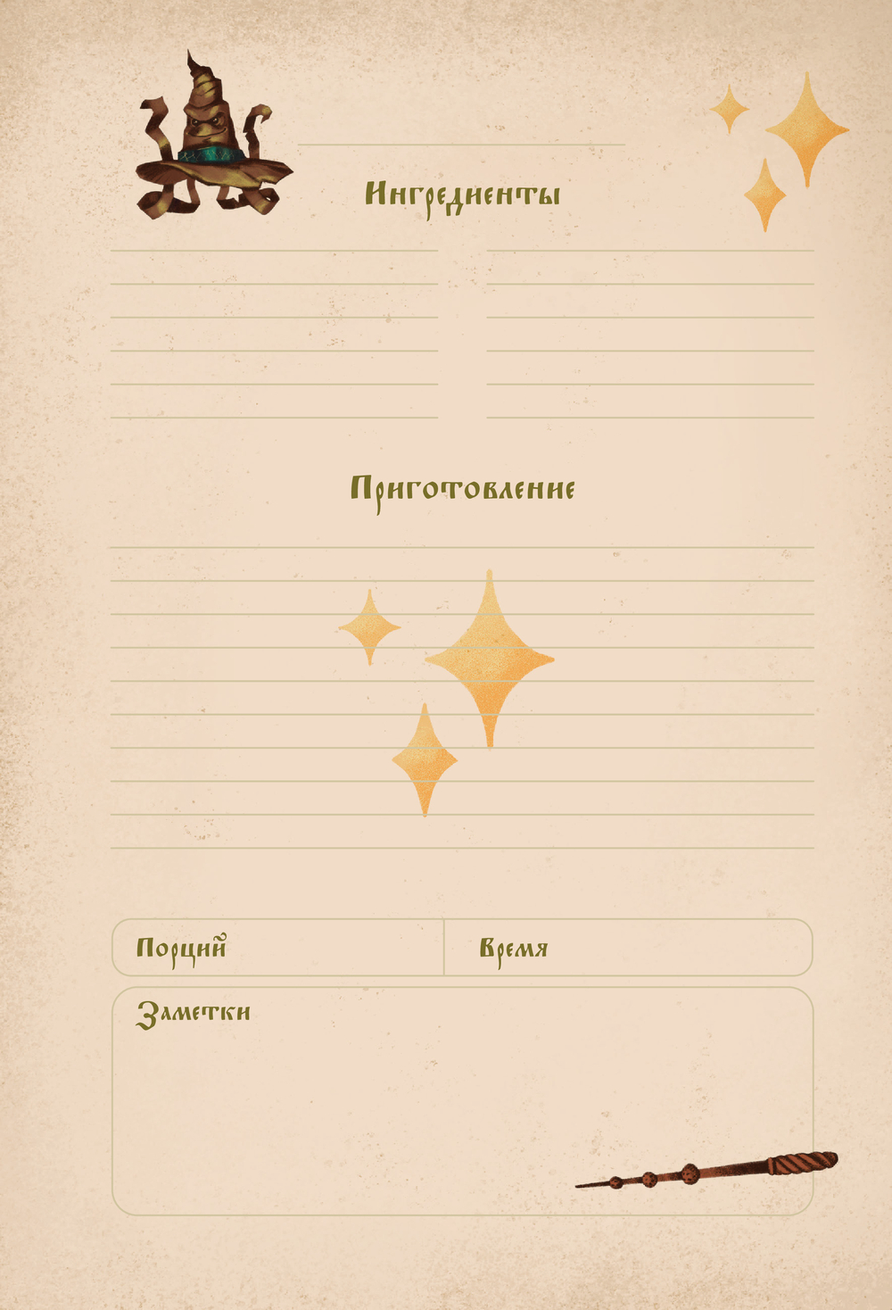 Откройте для себя мир волшебной кулинарии с этой уникальной книгой для записи рецептов! Созданная специально для фанатов вселенной Гарри Поттера, она станет незаменимым помощником на вашей магической кухне!