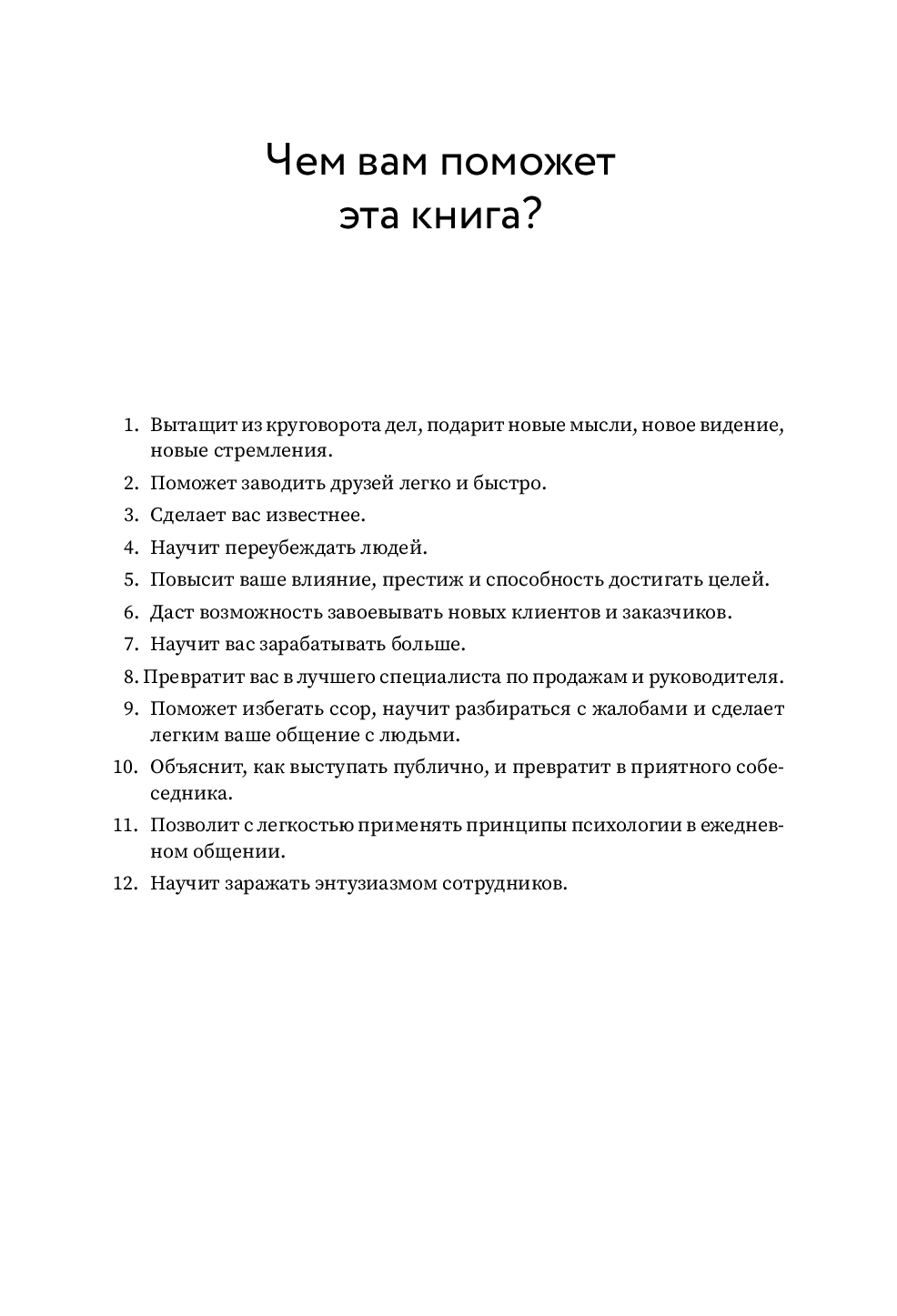 Вы найдете проверенные временем рекомендации и советы о том, как расположить к себе любого человека, справиться с тревогой и беспокойством, а также стать убедительным оратором, способным влиять на аудиторию. Приемы и методы Дейла Карнеги может легко освоить любой человек – это и конкретные шаги, и отличная мотивация для изменения жизни к лучшему прямо сейчас!