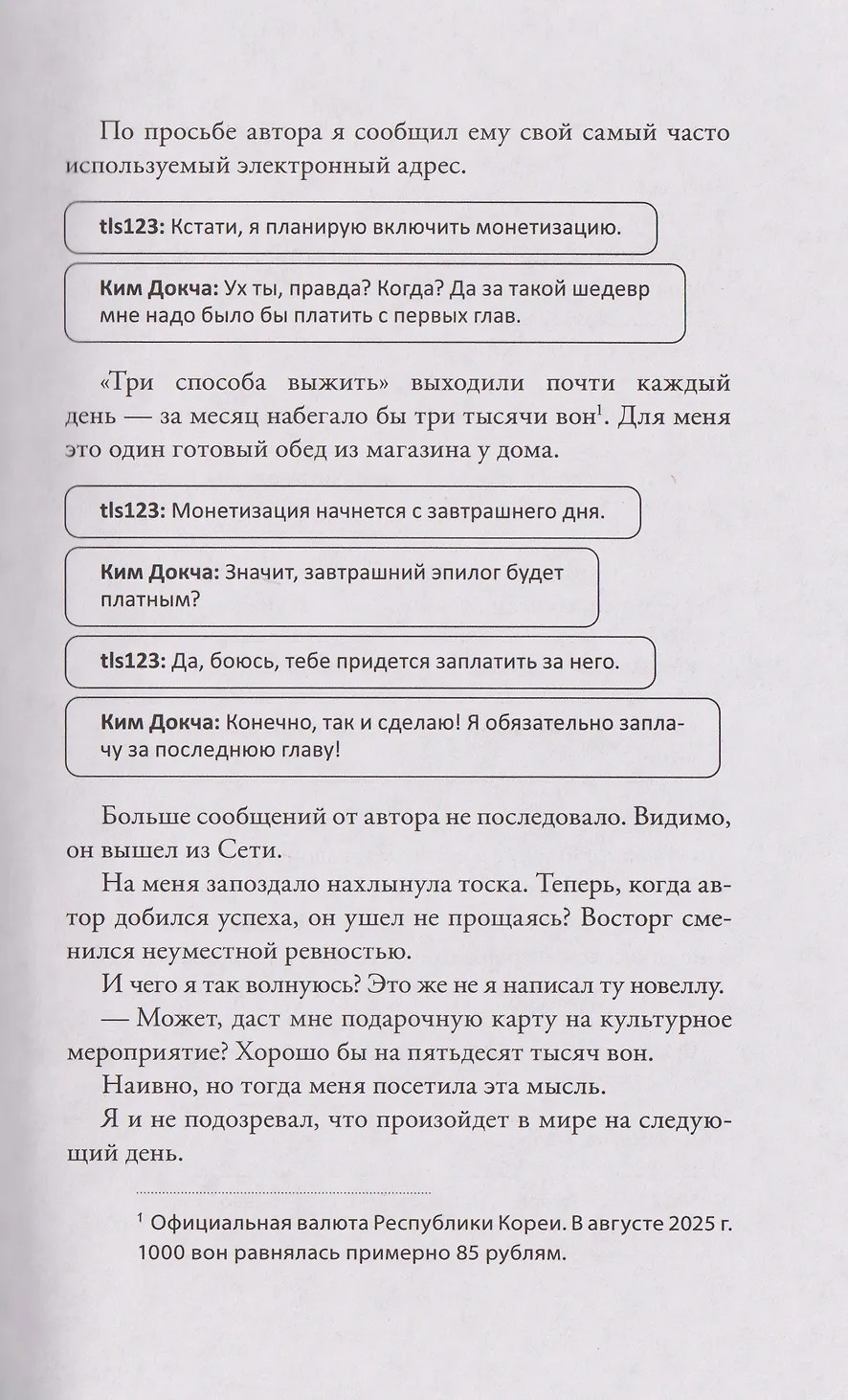 Наступает полный хаос, и только ничем не примечательный офисный работник Ким Докча сохраняет спокойствие. Он точно знает, что будет дальше. Вагон метро, реакция пассажиров, даже странное существо, которое появилось, чтобы наблюдать за развитием садистского сценария, – все это уже происходило в его любимой веб-новелле, настолько непопулярной, что Ким Докча стал ее единственным читателем. И теперь, единственным из всех зная, куда движется сюжет, он должен использовать эти знания, чтобы пережить надвигающийся апокалипсис!