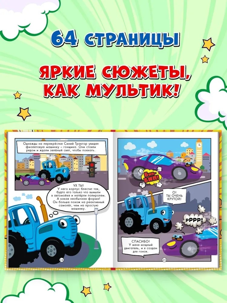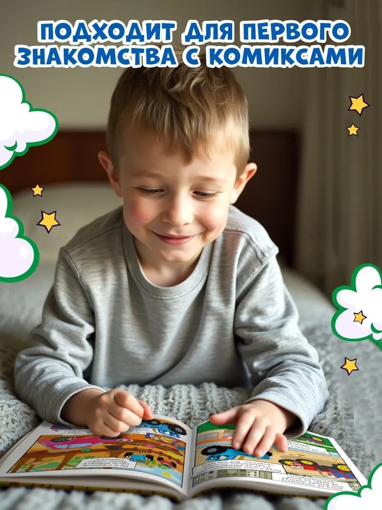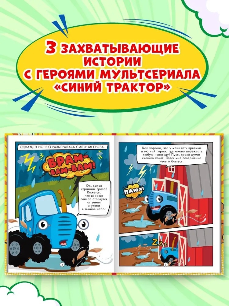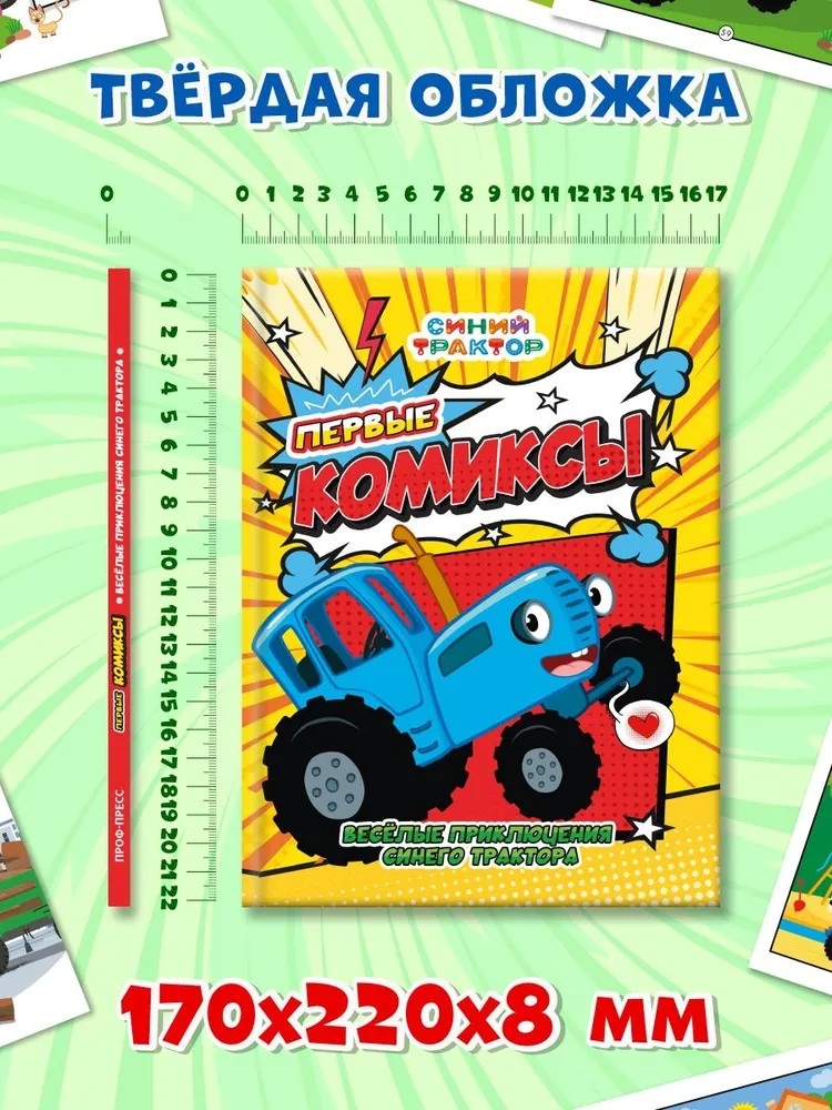 "Первые комиксы" созданы для малышей, которые только начинают знакомство с увлекательным миром книг. Читайте вместе с детьми добрые и весёлые истории в картинках о приключениях синего трактора и его друзей. Любимые герои, забавные иллюстрации и простые тексты помогут заинтересовать чтением маленьких непосед.