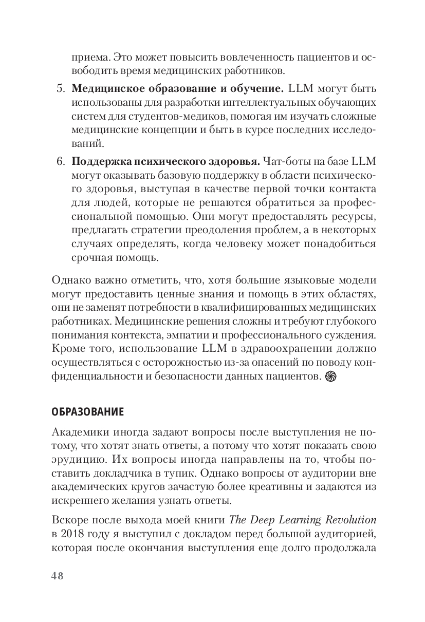 В книге "ChatGPT и будущем искусственного интеллекта" Терренс Сейновски предлагает детальное исследование больших языковых моделей (LLM), таких как ChatGPT, и того, что их ждет в будущем. Как мы должны понимать LLM? Действительно ли эти языковые модели осознают, что они говорят? Возможно ли, что то, что кажется интеллектом в LLM, всего лишь зеркало, отражающее интеллект интервьюера? В этой книге Сейновски, пионер вычислительных подходов к пониманию функций мозга, отвечает на все наши насущные вопросы об этой удивительной новой технологии.