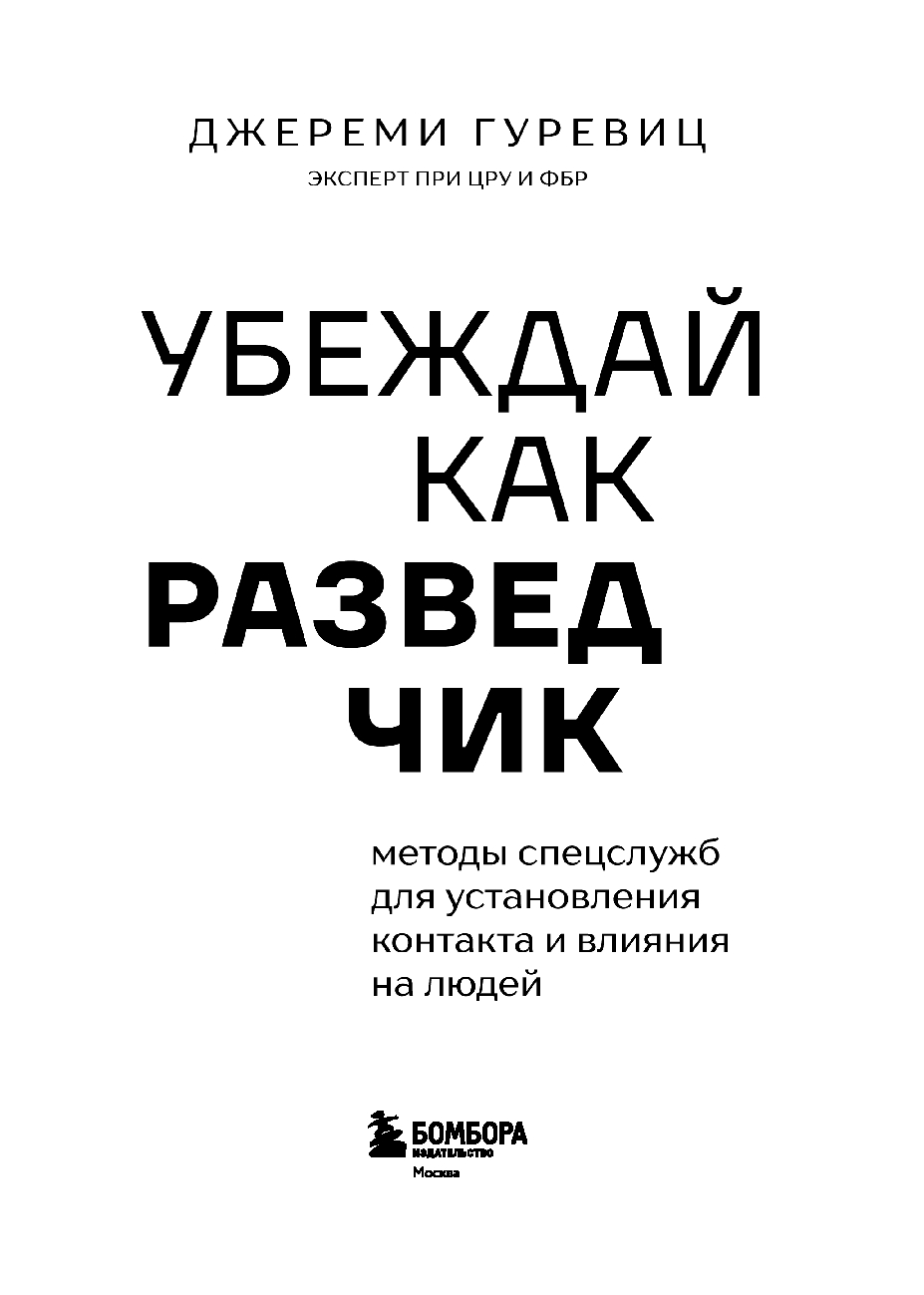 Джереми Гуревиц – эксперт по корпоративной безопасности. На протяжении 10 лет он изучал шпионские методики ЦРУ и ФБР и потом внедрял их в свои системы безопасности для защиты организаций и влиятельных частных лиц. Он также лично участвовал в переговорах с лучшими агентами спецслужб. Наблюдая за их работой, Джереми сделал важное открытие: настоящие разведчики – не денди в смокингах, а эксперты в развитии отношений.