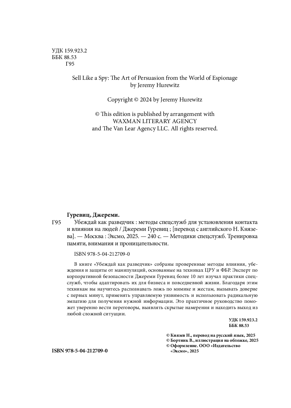 | Название в оригинале | Sell Like a Spy: The Art of Persuasion from the World of Espionage |