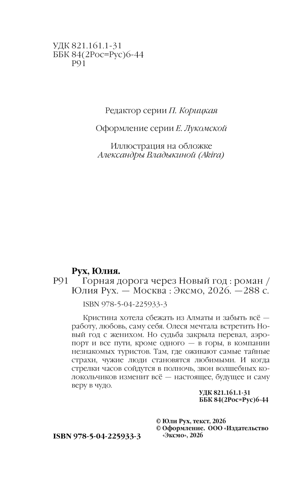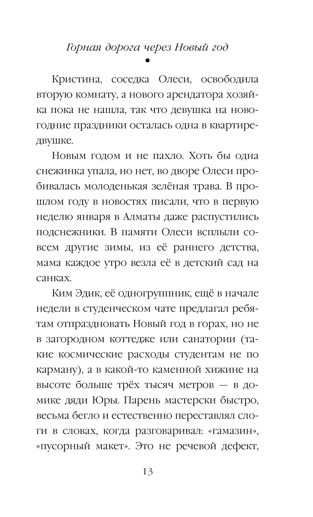 Кристина хотела сбежать из Алматы и забыть всё – работу, любовь, саму себя. Олеся мечтала встретить Новый год с женихом. Но судьба закрыла перевал, аэропорт и все пути, кроме одного – в горы, в компании незнакомых туристов. Там, где оживают самые тайные страхи, чужие люди становятся любимыми. И когда стрелки часов сойдутся в полночь, звон волшебных колокольчиков изменит всё – настоящее, будущее и саму веру в чудо.