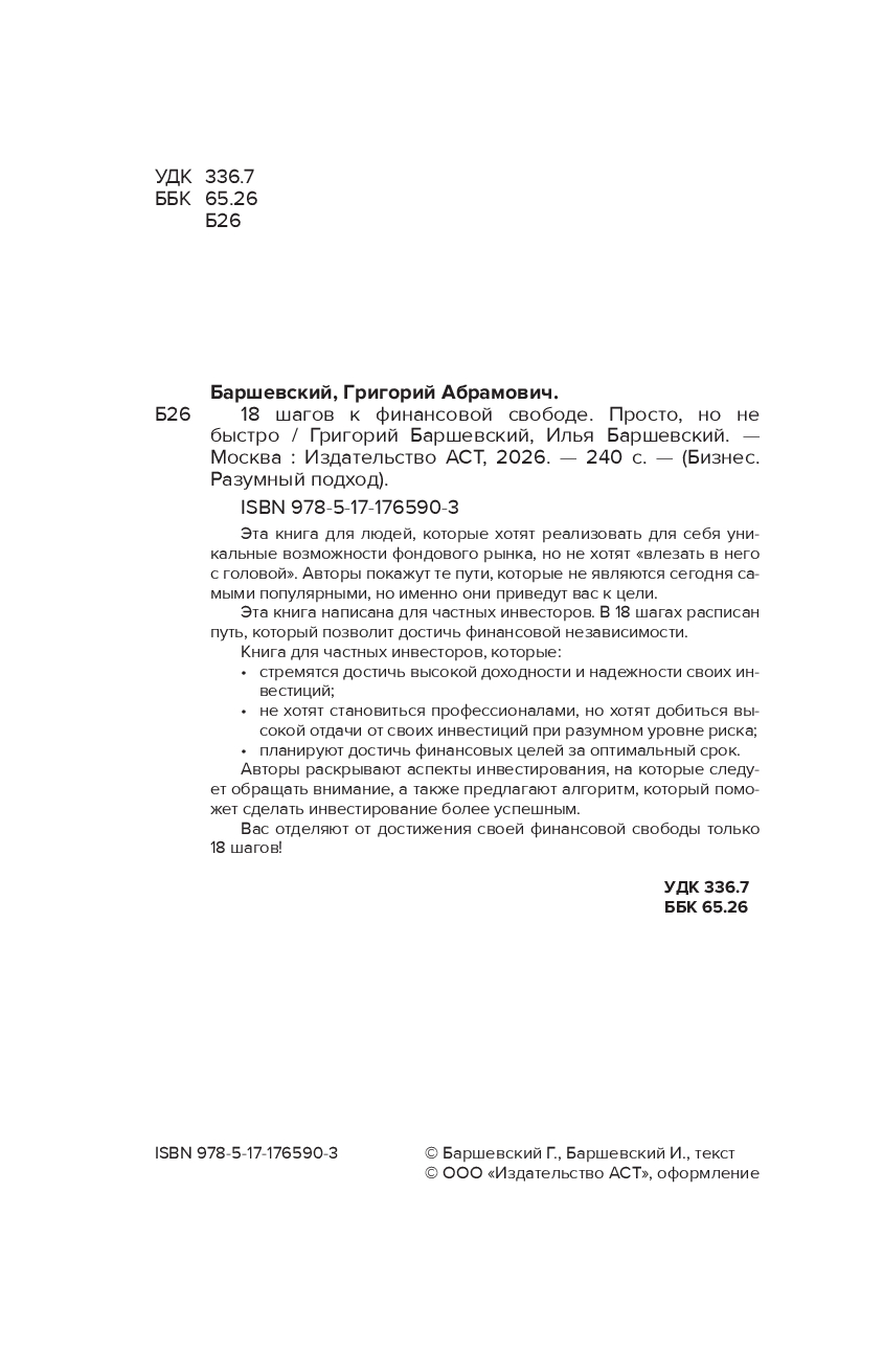 Эта книга написана для частных инвесторов. В 18 шагах расписан путь, который позволит достичь финансовой независимости.