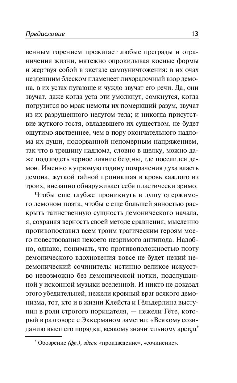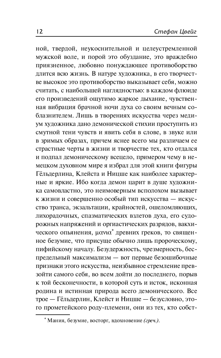 "Борьба с демоном" – одна из самых ярких книг Цвейга, в которой автор рисует портреты трех "чужаков своего века", трех великих гениев-безумцев – Гёльдерлина, Клейста и Ницше. Со свойственным ему тонким психологизмом Цвейг подробно описывает жизненный путь каждого из них, обнаруживая много общего в их судьбах и давая читателю возможность лучше понять феномен этих удивительных личностей.