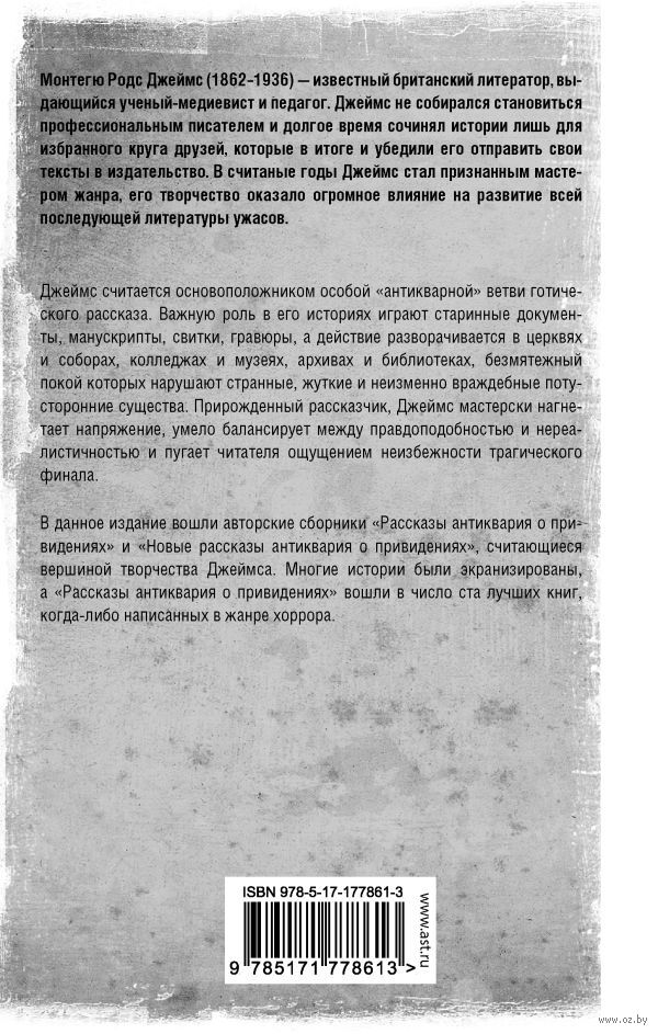 В данное издание вошли авторские сборники "Рассказы антиквария о привидениях" и "Новые рассказы антиквария о привидениях", считающиеся вершиной творчества Джеймса. Многие истории были экранизированы, а "Рассказы антиквария о привидениях" вошли в число ста лучших книг, когда-либо написанных в жанре хоррора.