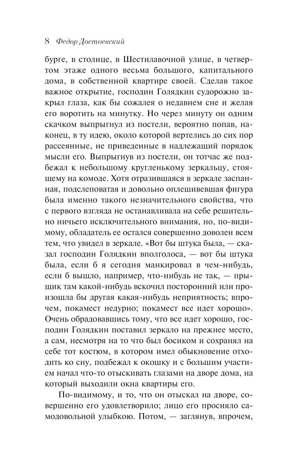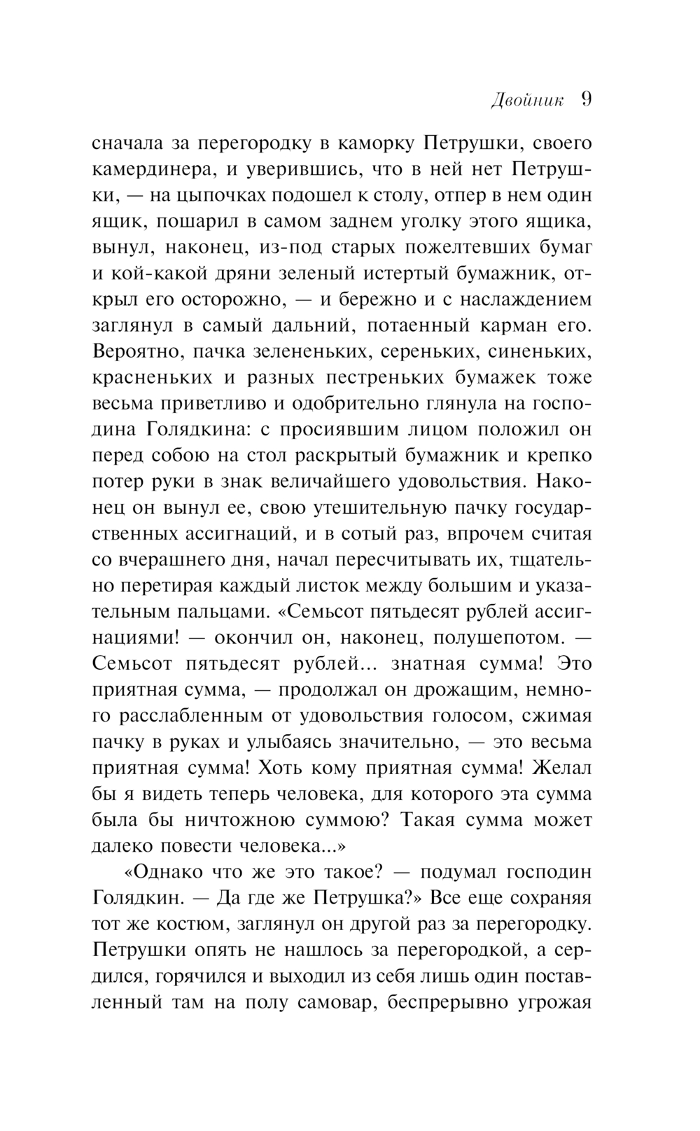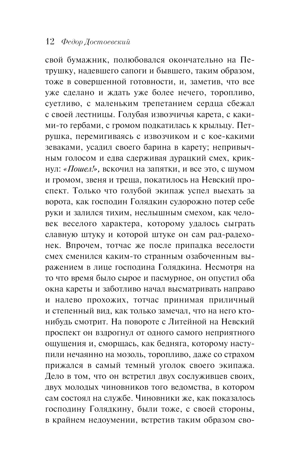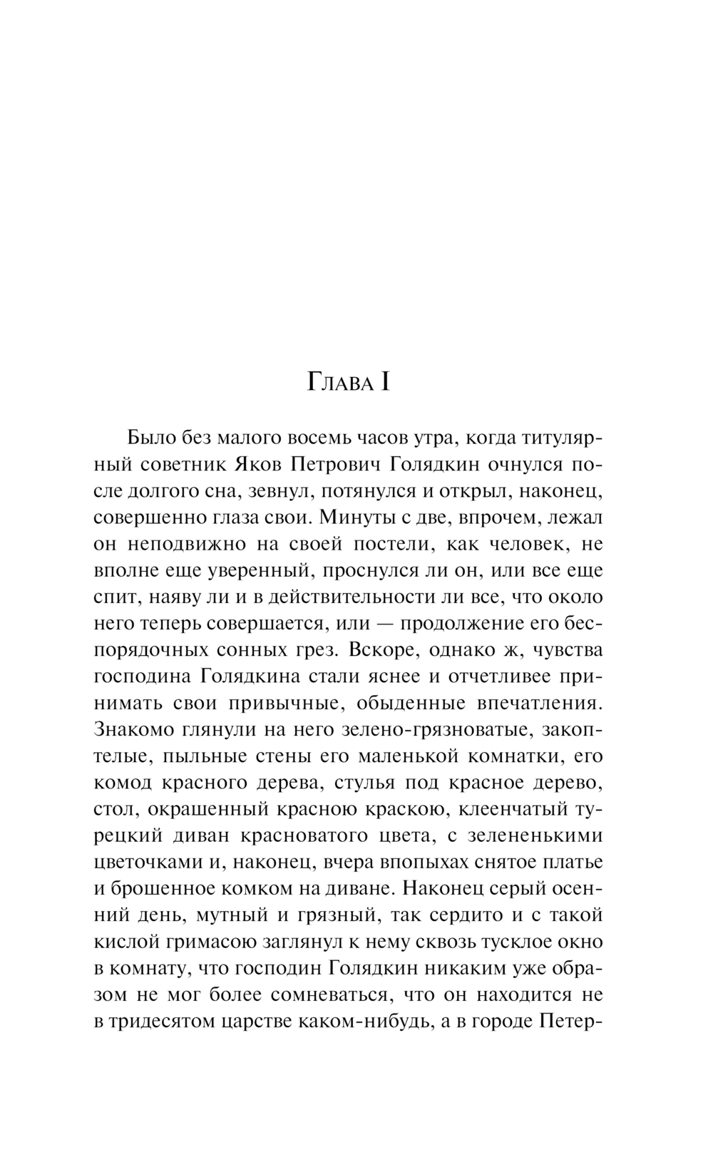 На улицы Петербурга, по которым бродили нервные герои гоголевских повестей, спустя всего несколько лет вышли персонажи Федора Достоевского. Это мелкие чиновники, поглощенные своей "маленькой" жизнью, за фасадом которой, однако, кроются нешуточные страсти. В "Двойнике" материализуется темная сторона личности господина Голядкина, совсем как у стивенсоновских мистера Джекила и доктора Хайда, а в "Сне смешного человека" проглядывают призраки всех главных тем будущих великих романов автора: нигилизма, отрешенности, зыбкой грани между безумием и просветлением.