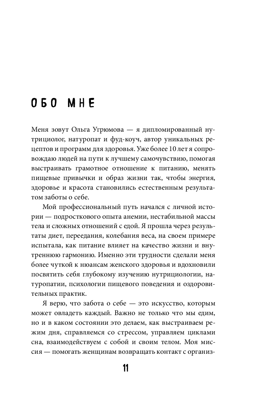 Ольга Угрюмова – нутрициолог и фуд-коуч с более чем 12-летней практикой, член Российского общества диетологов и нутрициологов. На основе личного опыта, научных данных и работы с сотнями женщин она выработала собственную методику, как сохранить энергию молодости.