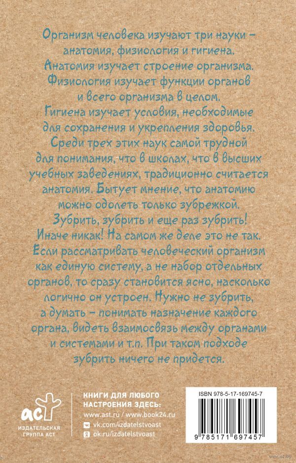 Среди трех этих наук самой трудной для понимания, что в школах, что в высших учебных заведениях, традиционно считается анатомия. Бытует мнение, что анатомию можно одолеть только зубрежкой. Зубрить, зубрить и еще раз зубрить! Иначе никак! На самом же деле это не так. Если рассматривать человеческий рганизм как единую систему, а не набор отдельных органов, то сразу становится ясно, насколько логично он устроен. Нужно не зубрить, а думать – понимать назначение каждого органа, видеть взаимосвязь между органами и системами и т.п. При таком подходе зубрить ничего не придется.