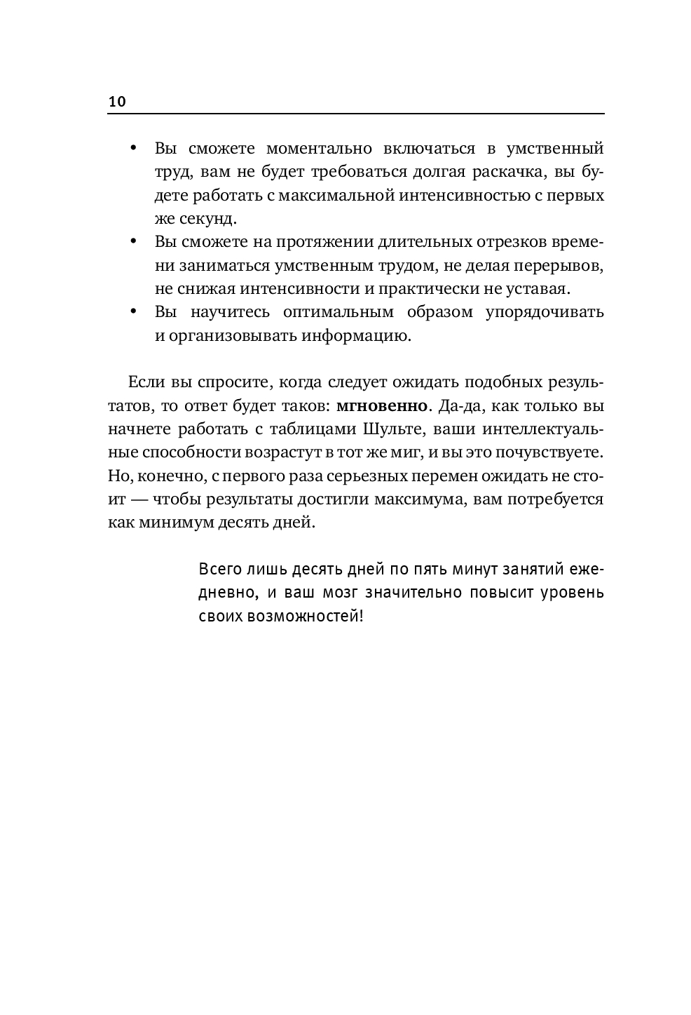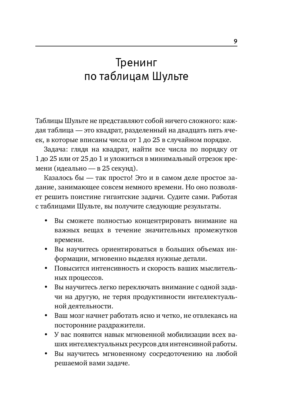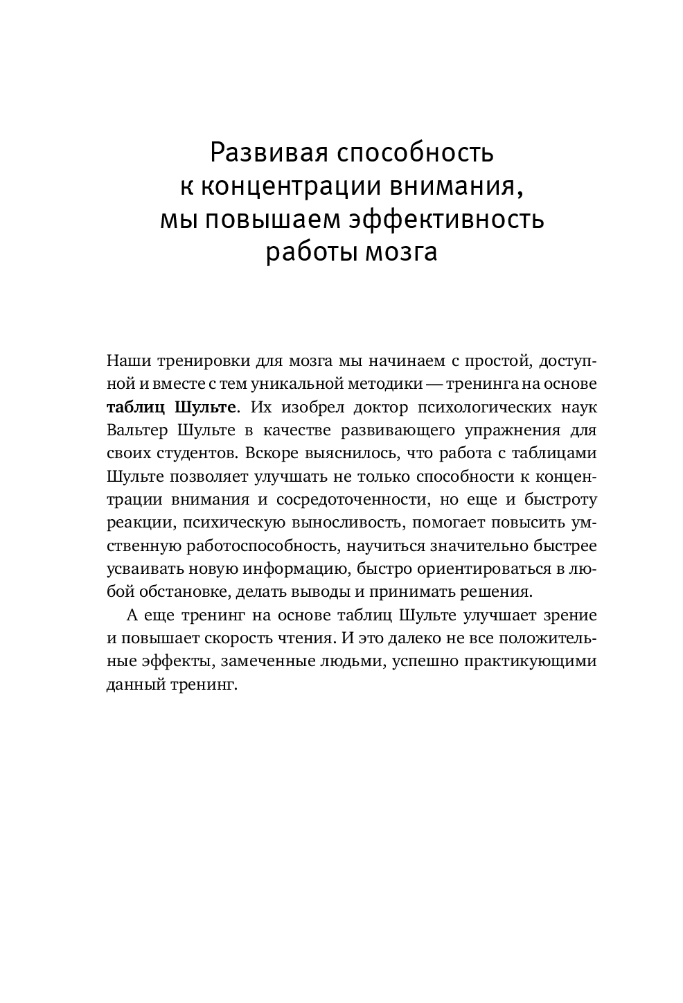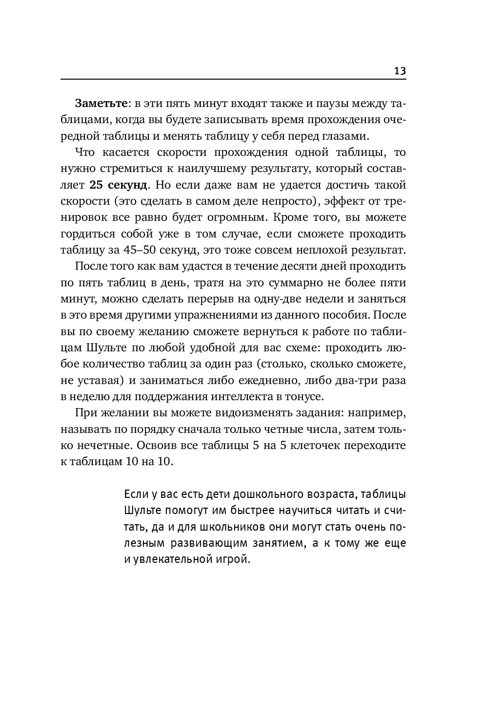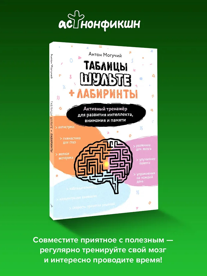 Этот интенсивный тренинг – настоящий суперзаряд для вашего мозга на основе таблиц Шульте, дополненный хитрыми лабиринтами и новыми упражнениями для улучшения памяти и развития внимательности.