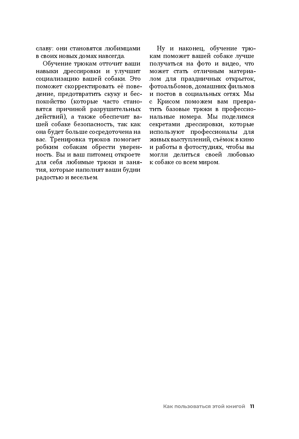 Книга разработана с учётом психологических особенностей собак и основана на принципах уважительного и доброжелательного дрессирования.