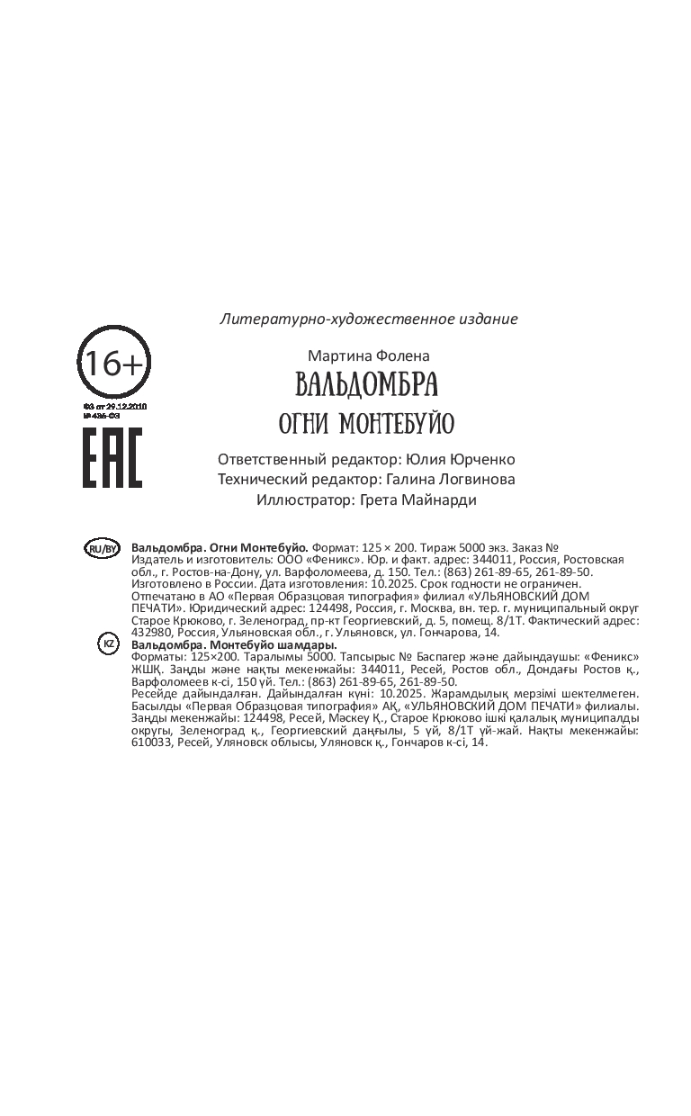| Изготовитель | ЗАО "Издательство "Феникс". 190000, РФ, г. Санкт-Петербург, пер. Антоненко, 2 |