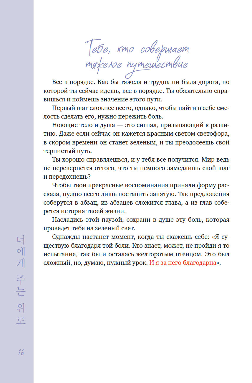 Вместо пустых слов утешения Ким Джихун предлагает пронзительные и искренние размышления, которые помогут иначе взглянуть на свою боль и переживания.