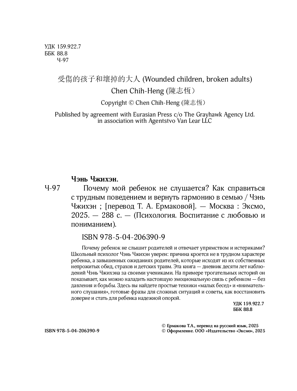 Каждый родитель хотя бы раз задавался вопросами: "Почему мой ребенок меня не слышит? Почему дома постоянные конфликты, упрямство и истерики?" Известный школьный психолог Чэнь Чжихэн уверен: дело вовсе не в трудном характере ребенка, а в удушающей любви и завышенных ожиданиях взрослых, которые исходят из их собственных непрожитых обид, страхов и детских травм.