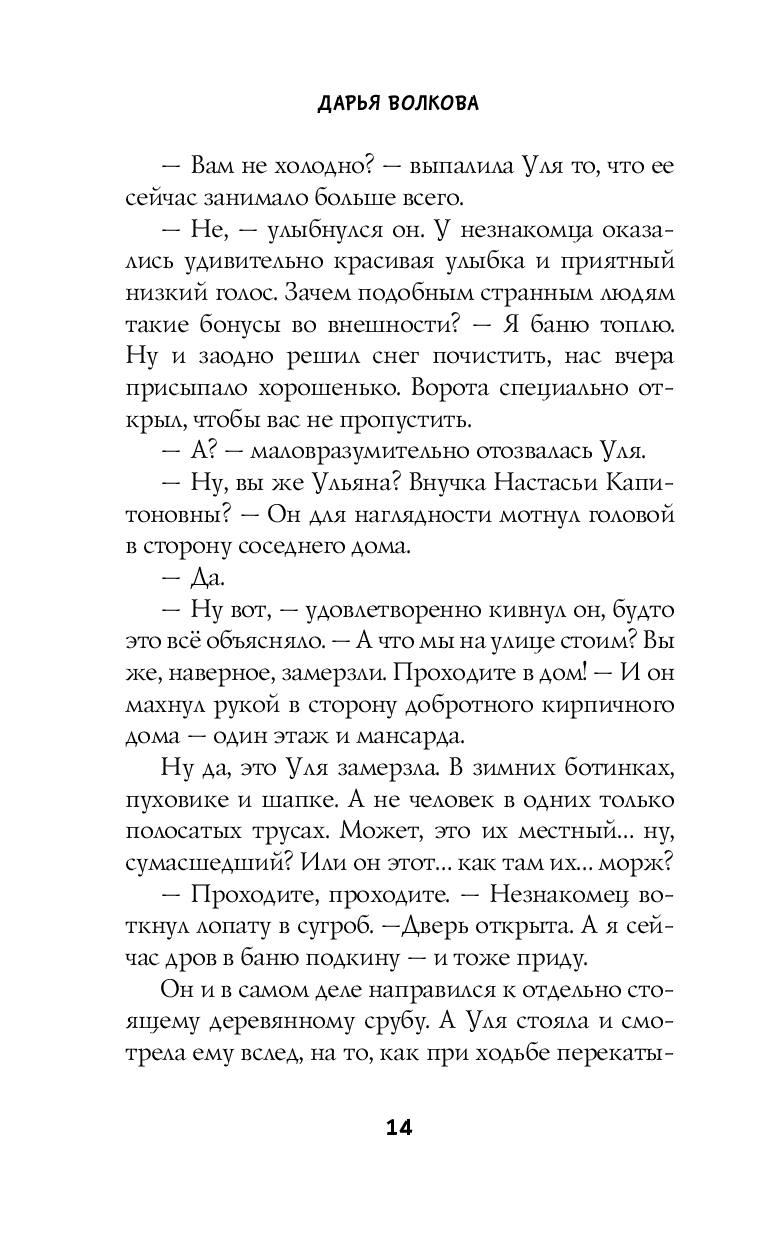 "Если нет новогоднего настроения, – думала Ульяна Лосева, шагая по заваленной снегом деревне к дому своей бабушки, – это тоже хорошо. Значит, никто мне его не испортит". Встречать Новый год только в обществе бабули Ульяна собралась не по собственному желанию, а по настоянию матери. "Конечно, новогодняя ночь – это время чудес, волшебства и исполнения самых-самых тайных желаний, – огорчалась она, пробираясь по чуть натоптанной тропинке в снегу, – но, наверное, не в этот раз".