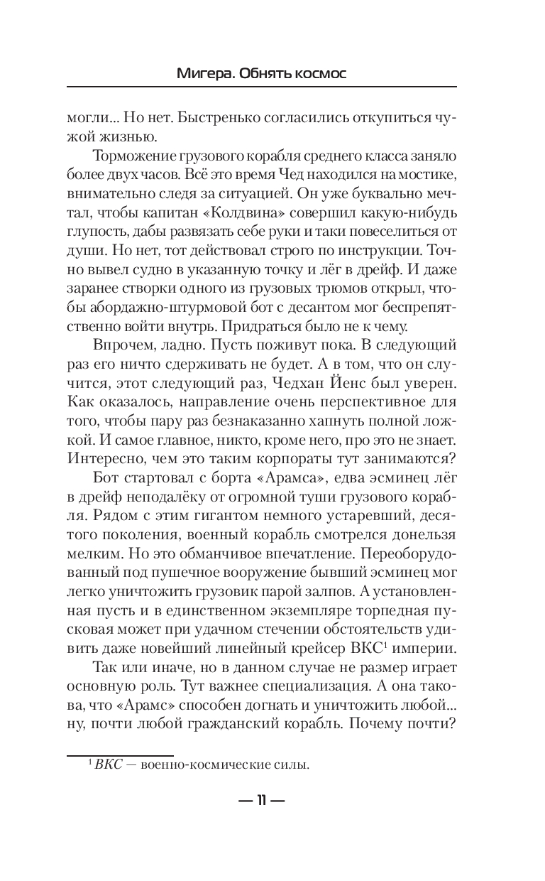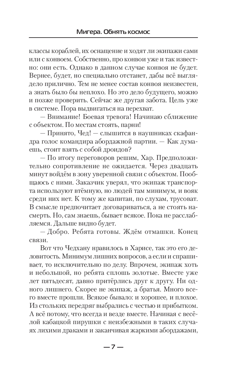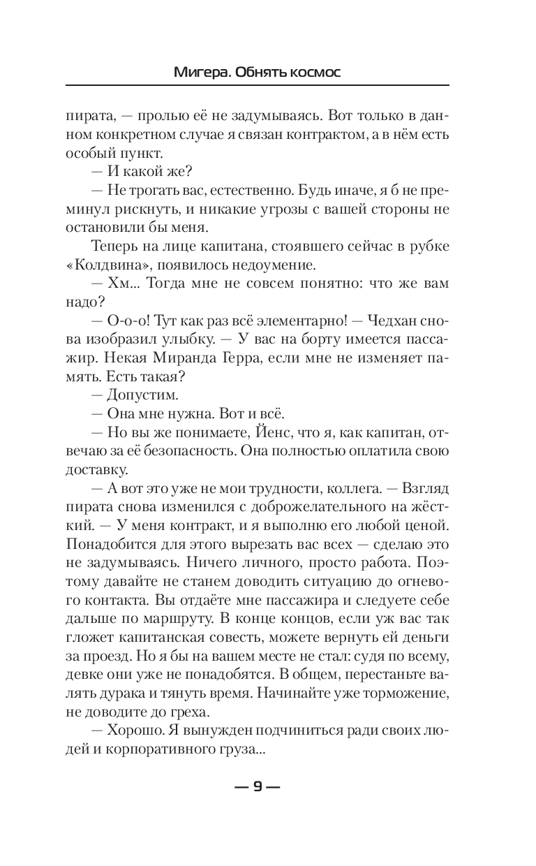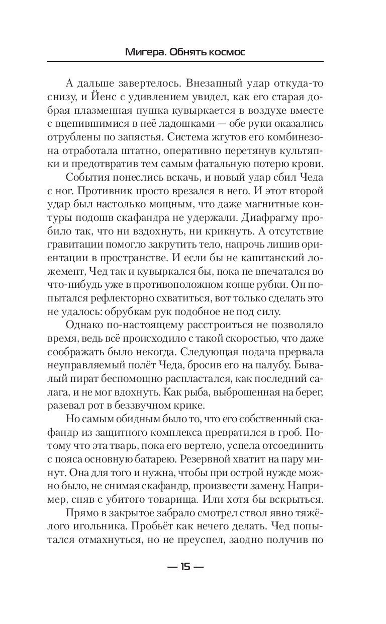 Старые враги потеряли Мигеру из виду, зато новые не дремлют. Но девчонке не привыкать. Двигаться вперёд вопреки всевозможным опасностям давно уже вошло в привычку. Трудности лишь закаляют характер. Никто не сможет помешать ей в достижении цели. Никакие препятствия её не остановят. Преодолевать их – это с некоторых пор её работа. Ведь цель, считает она, оправдывает средства, а некие моральные неудобства, если таковые возникнут по ходу дела, она как-нибудь переживёт. Но чтобы давно задуманное стало возможным, необходимо сначала обнять космос. По-настоящему обнять.