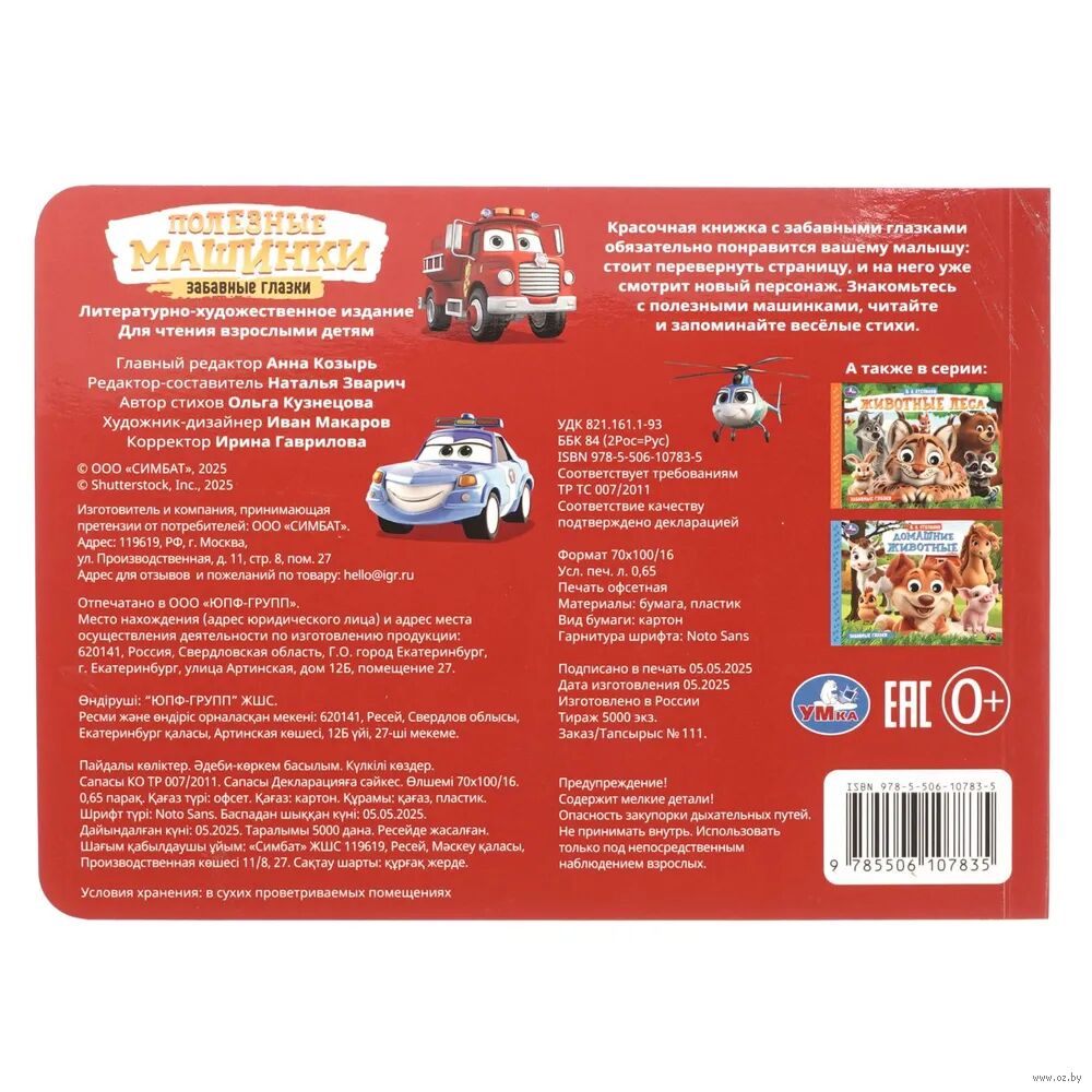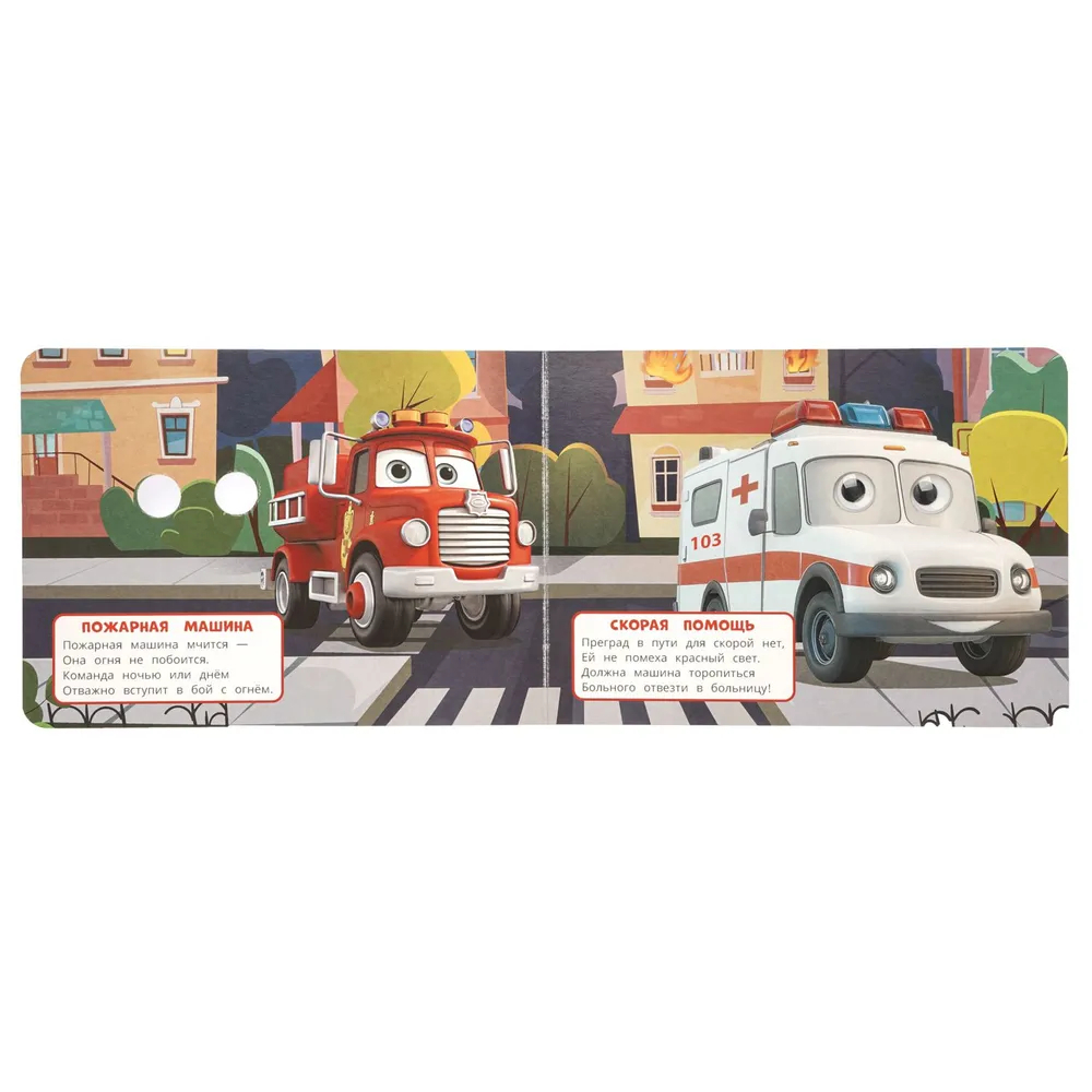 Книжка-игрушка с глазками Полезные машинки создана специально для маленьких любознательных умов, чтобы развивать их фантазию и воображение.