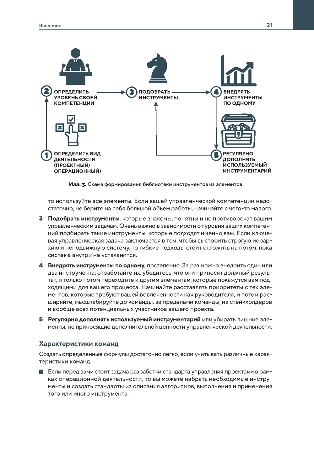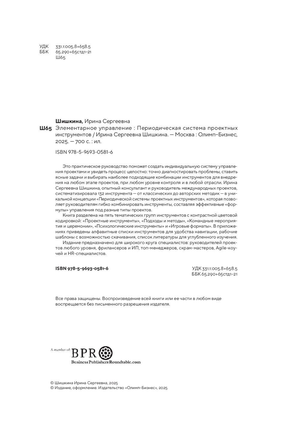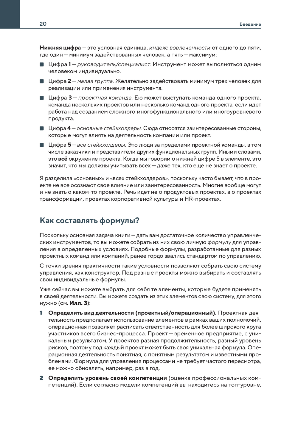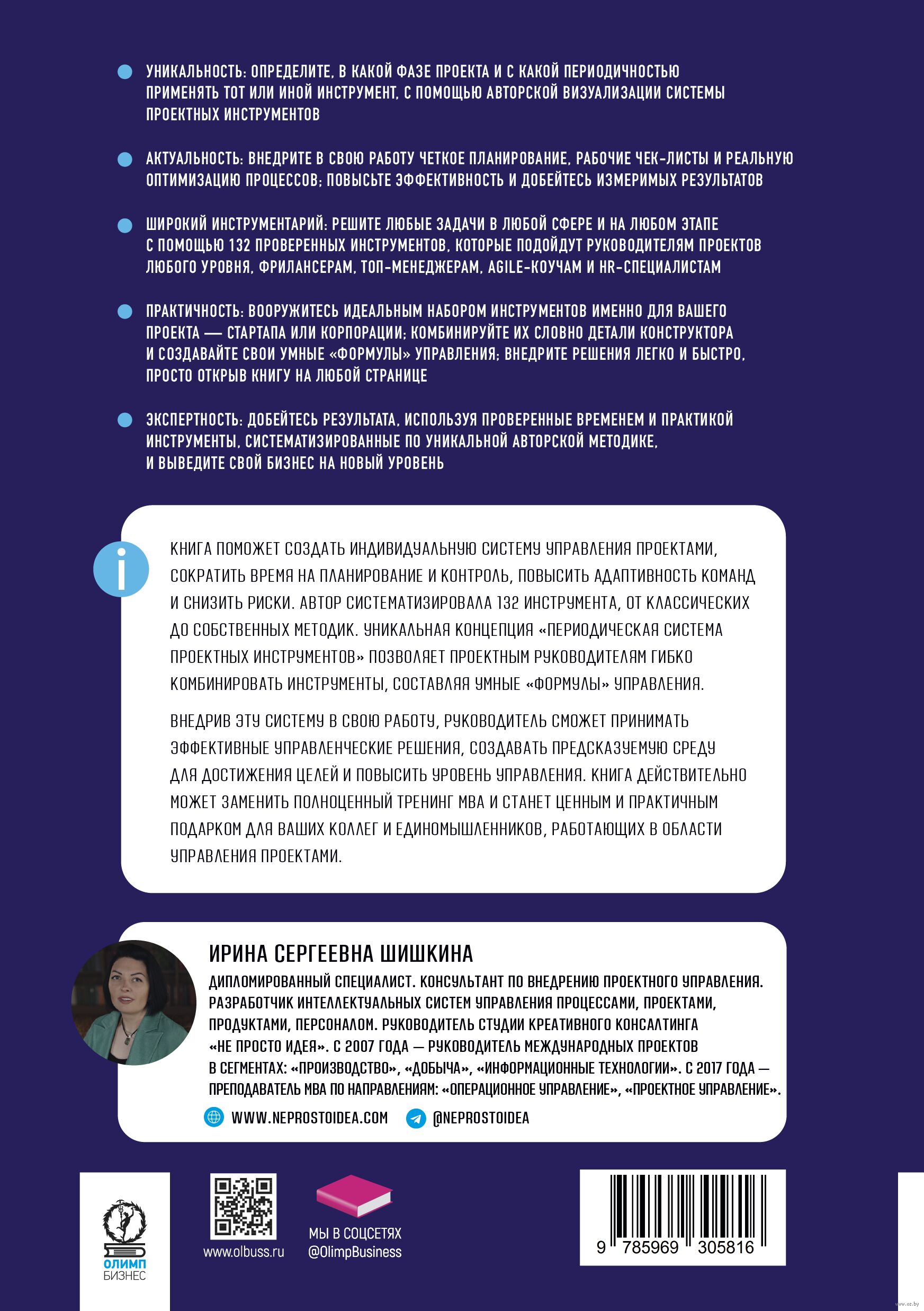 Книга поможет создать индивидуальную систему управления проектами, сократить время на планирование и контроль, повысить адаптивность команд и снизить риски. Автор систематизировала 132 инструмента – от классических до собственных методик – в уникальной концепции "Периодической системы проектных инструментов", которая позволяет проектным руководителям гибко комбинировать инструменты, составляя эффективные "формулы" управления.