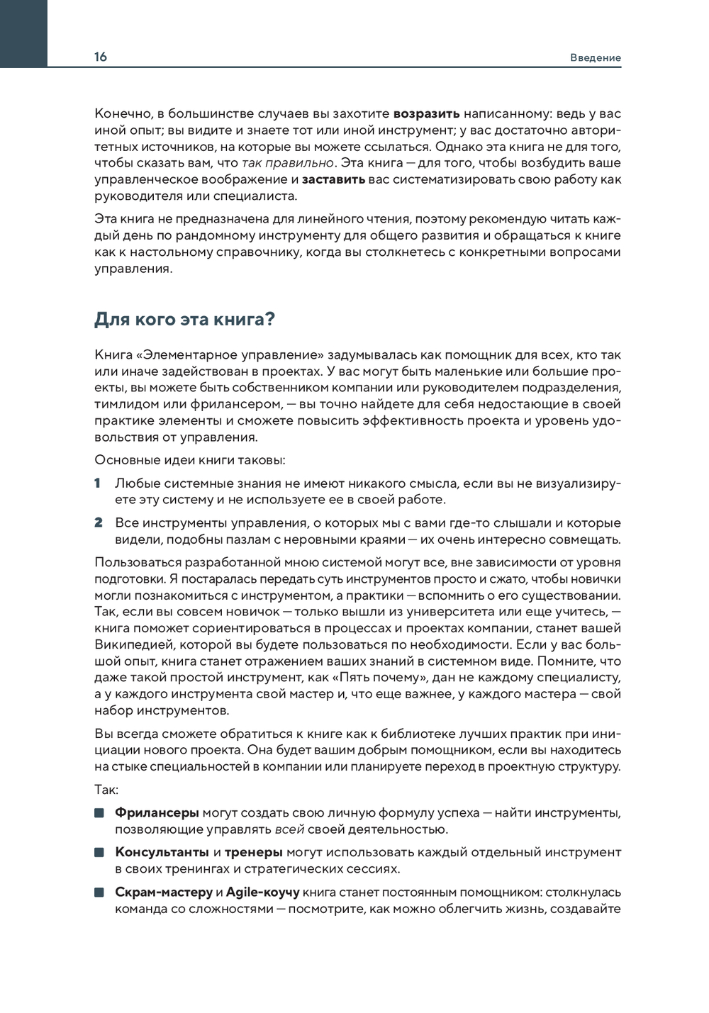Внедрив эту систему в свою работу, руководитель сможет принимать эффективные управленческие решения, создавать предсказуемую среду для достижения целей и повысить уровень управления. Книга действительно может заменить полноценный тренинг MBA и станет ценным и практичным подарком для ваших коллег и единомышленников, работающих в области управления проектами.