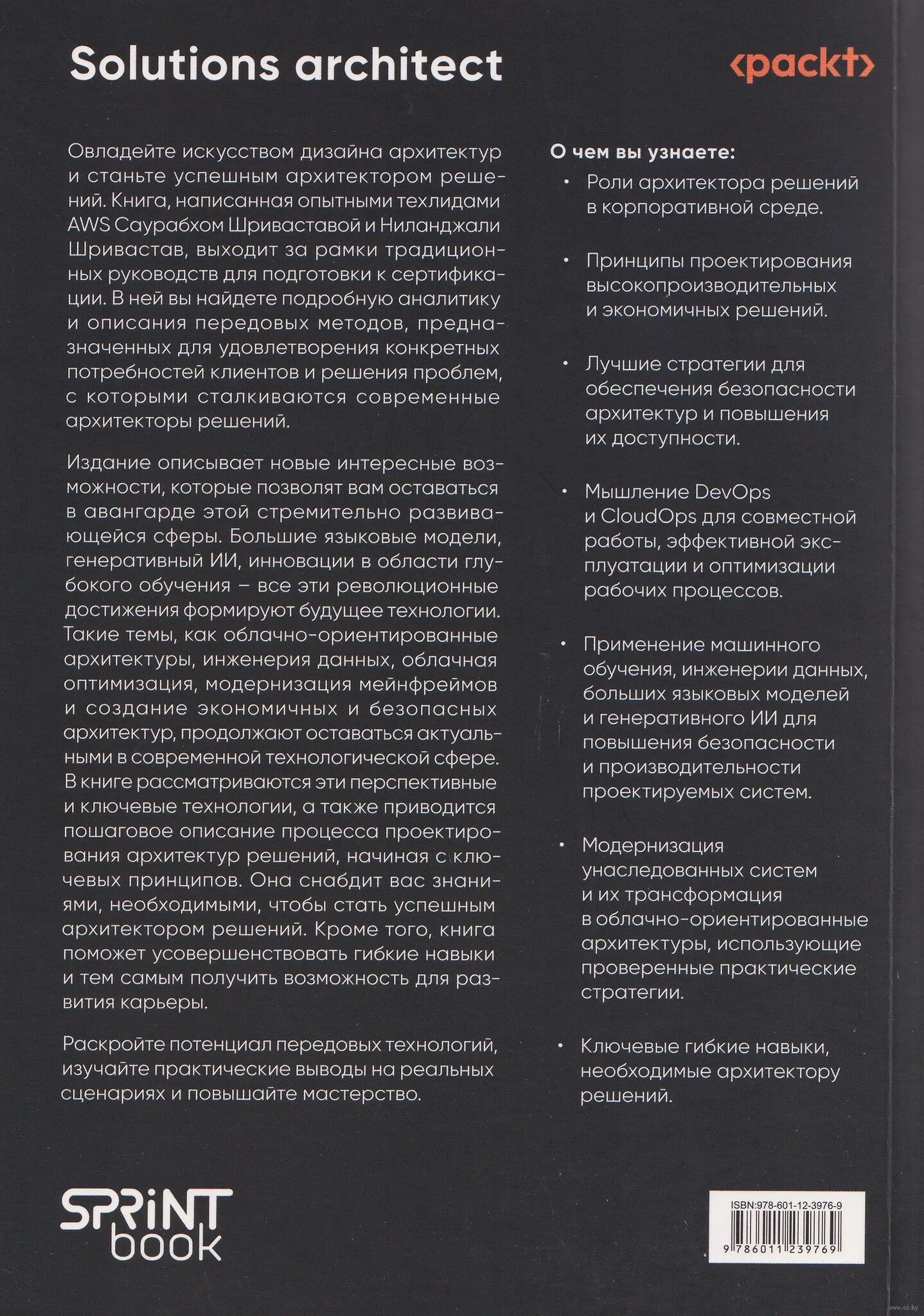 Овладейте искусством дизайна архитектур и станьте успешным архитектором решений. Книга, написанная опытными техлидами AWS Саурабхом Шриваставой и Ниланджали Шривастав, выходит за рамки традиционных руководств для подготовки к сертификации. В ней вы найдете подробную аналитику и передовые методы, предназначенные для удовлетворения конкретных потребностей клиентов и решения проблем, с которыми сталкиваются современные архитекторы решений.
