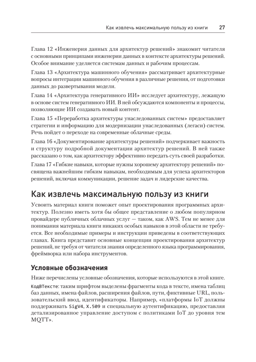 В книге рассматриваются эти перспективные и ключевые технологии, а также приводится пошаговое описание процесса проектирования архитектур решений, начиная с ключевых принципов. Она снабдит вас знаниями, необходимыми, чтобы стать успешным архитектором решений, а также поможет усовершенствовать гибкие навыки и тем самым получить возможность для развития карьеры.