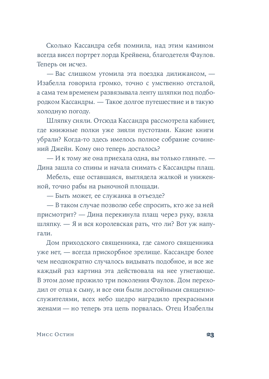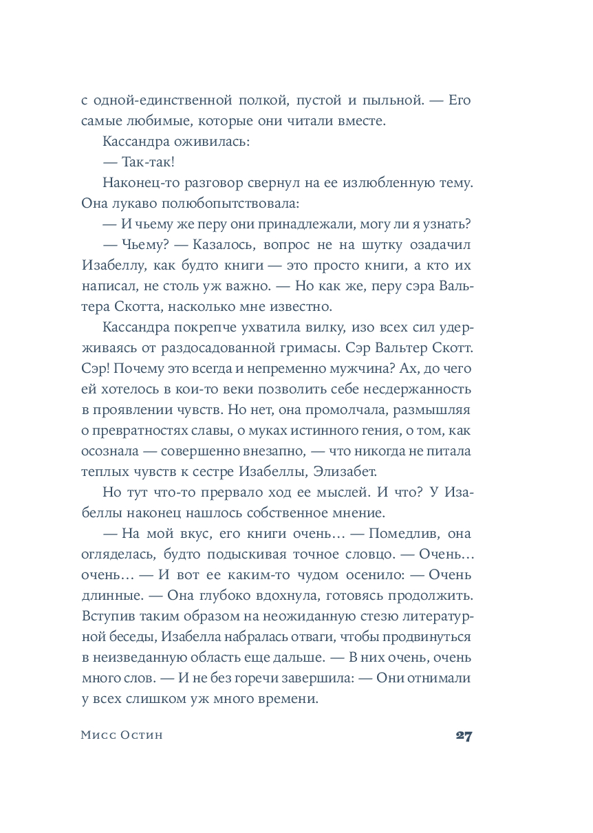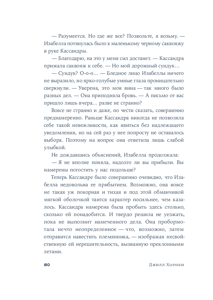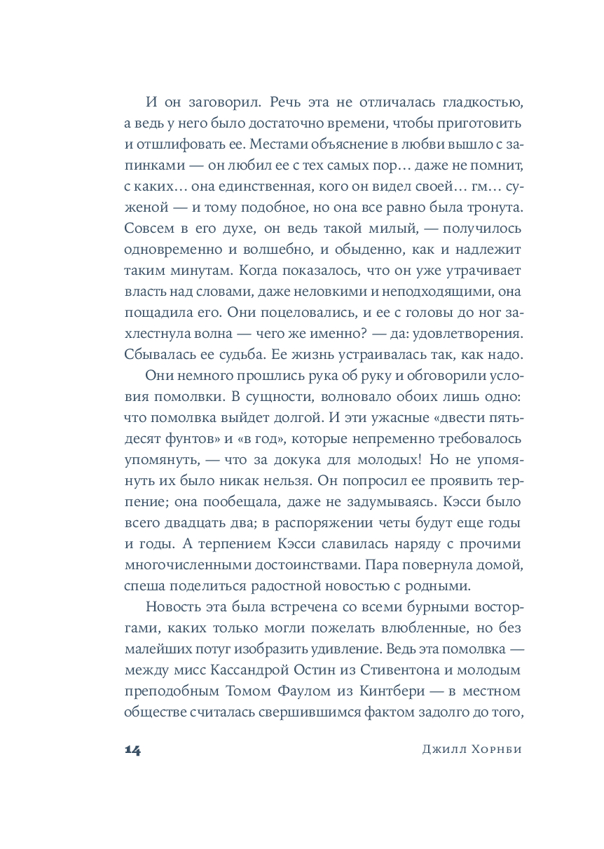 Джилл Хорнби с мастерством историка и чуткостью художника рисует достоверную картину жизни семьи Остин. Выходя за рамки традиционного биографического романа, автор дает голос Кассандре – свидетельнице становления и расцвета уникального таланта Джейн. Великолепный роман о "невидимом" труде, внутренней силе и безграничной любви, которая переписывает прошлое, оставляя только самые светлые главы.