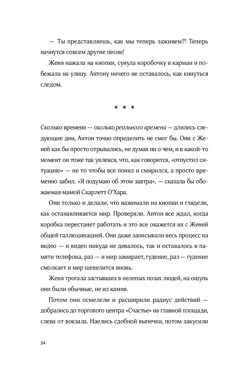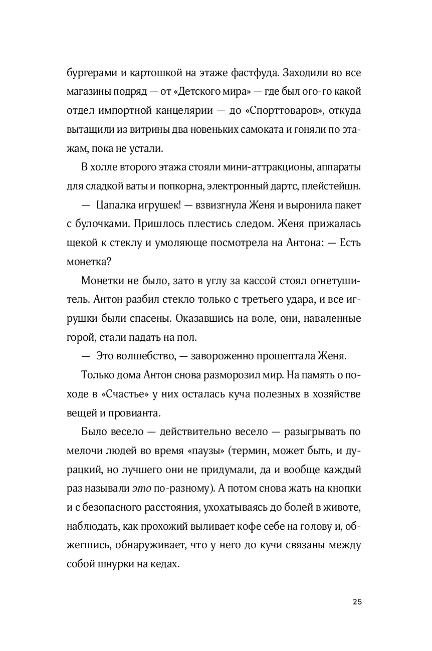 Антон и Женя живут по соседству в тихом провинциальном городке и с детства обожают всевозможные розыгрыши. Волей случая друзья становятся обладателями невероятного прибора – пульта по управлению временем. Мир теперь можно поставить на паузу, а потом запустить снова! Но почему-то только что тебе было четырнадцать, а сейчас – все двадцать пять, мама тебя не узнает и где-то рядом рыщут жуткие существа, крадущие годы жизни.
