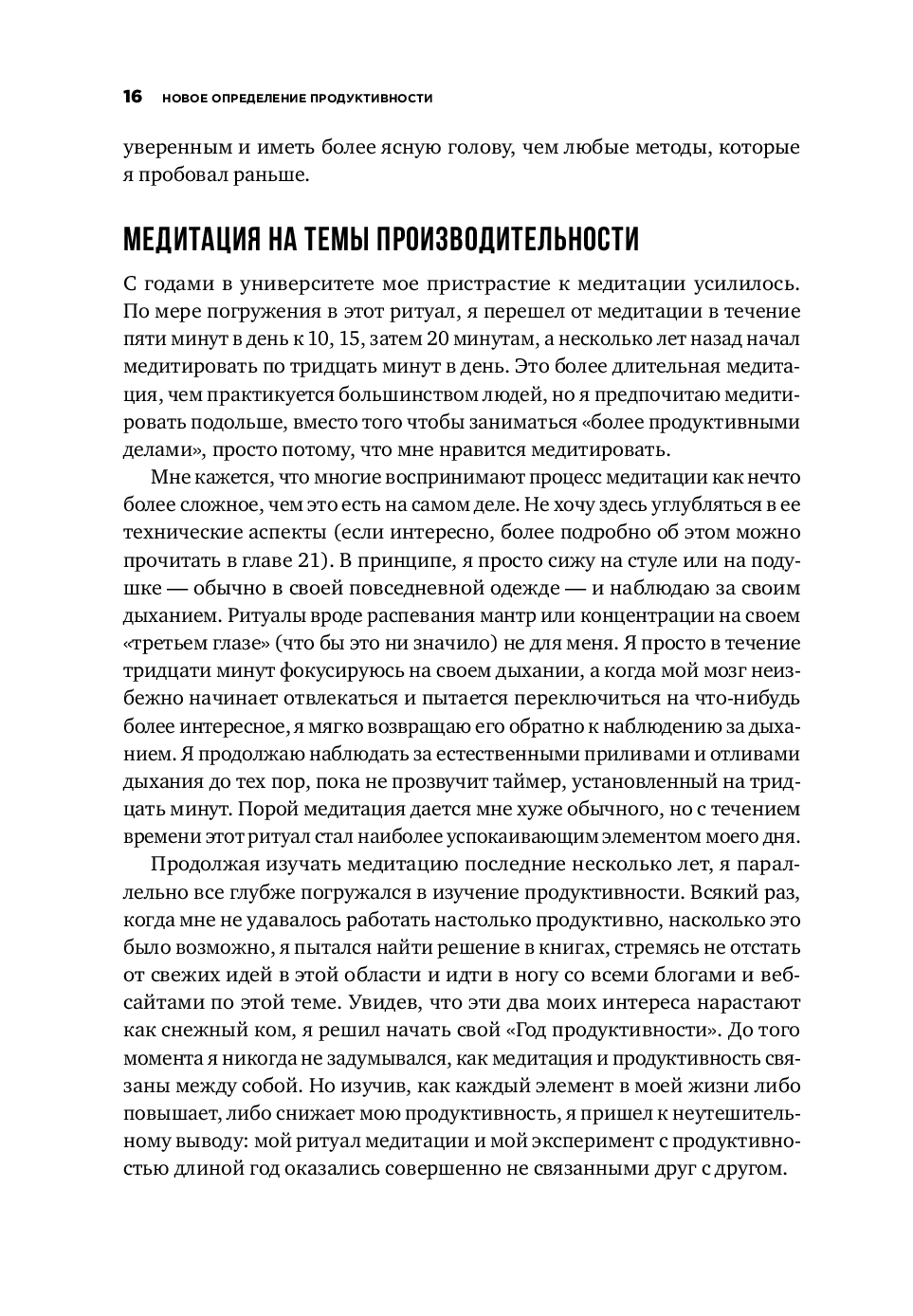 В поисках действенных приемов личной эффективности Крис Бэйли взялся за амбициозный проект – в течение года он исследовал и протестировал на себе множество методик: например, он работал по 90 часов в неделю, медитировал 30 минут каждый день, месяц пил только воду, пользовался смартфоном только час в день и пытался жить в полной изоляции.