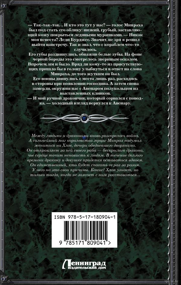 Между людьми и драконами вновь разгорелась война. А сильнейший маг королевства герцог Минрах надумал жениться на Хлое, дочери обедневшего дворянина. Он отправляет за ней своего раба – бескрылого дракона, чье сердце точит ненависть к людям. В течение долгого времени дракону и девушке придется оставаться вдвоем. Он единственный, кто будет спасать ее раз за разом. У него на это свои причины. Какие? Хлоя узнает, но только тогда, когда не захочет с ним расставаться...