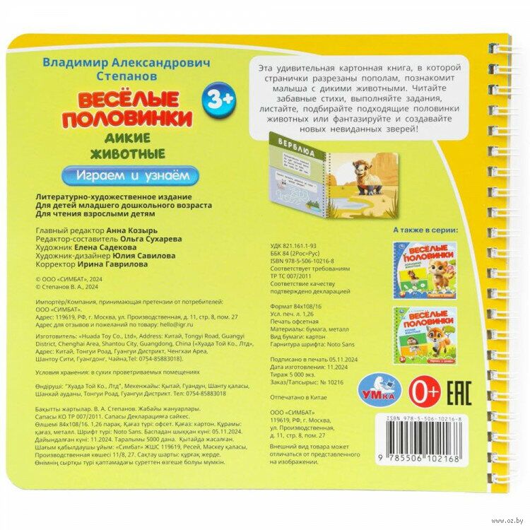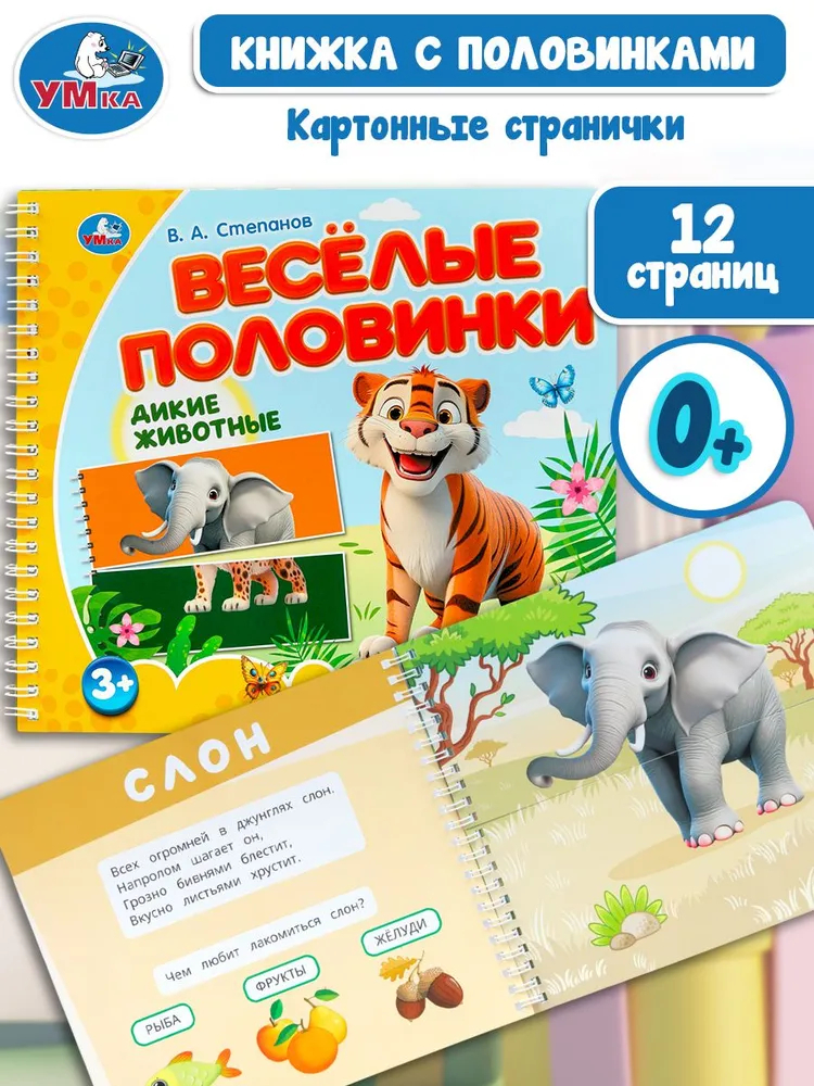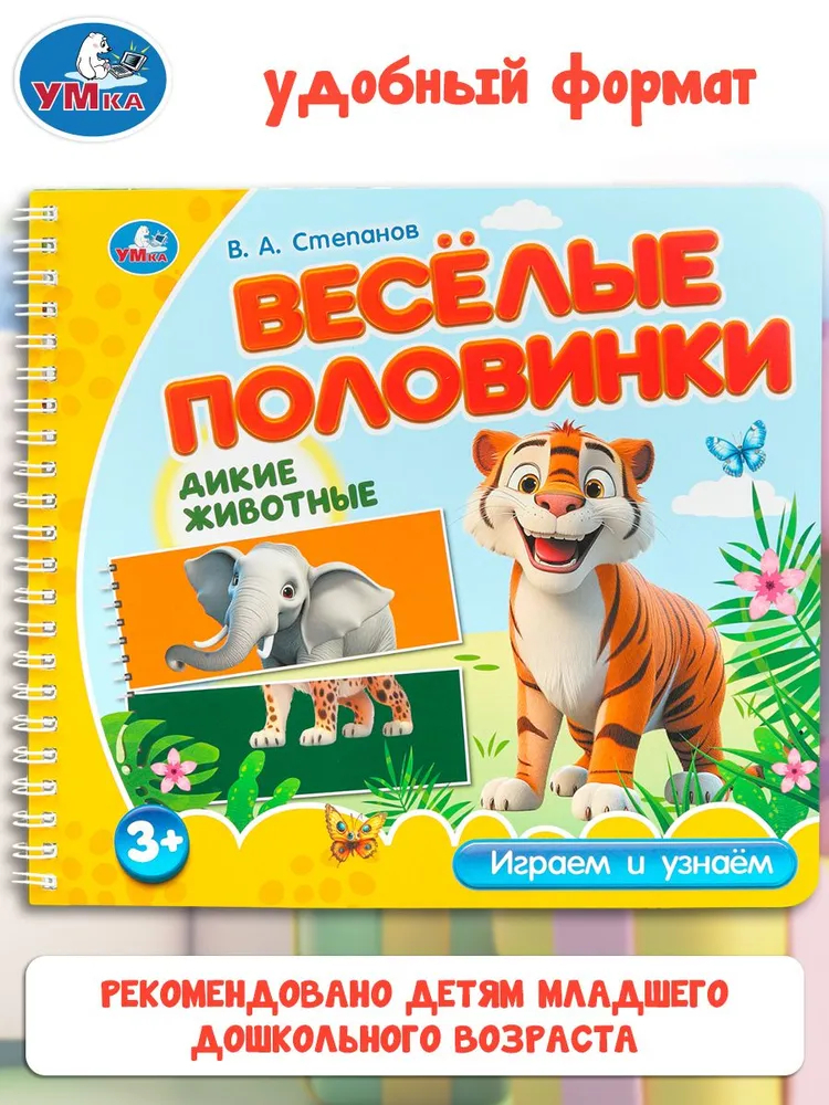 Яркая и увлекательная книжка-картонка "Веселые половинки. Дикие животные" станет прекрасным подарком для вашего малыша! Книга в удобном формате А5 изготовлена из плотного картона, что делает ее долговечной и безопасной для маленьких ручек. Автор, В. А. Степанов, в простой и понятной форме знакомит ребенка с миром диких животных. Особенность книги – ее интерактивный формат "веселые половинки", который позволяет ребенку самостоятельно составлять изображения животных, развивая мелкую моторику, логическое мышление и воображение.