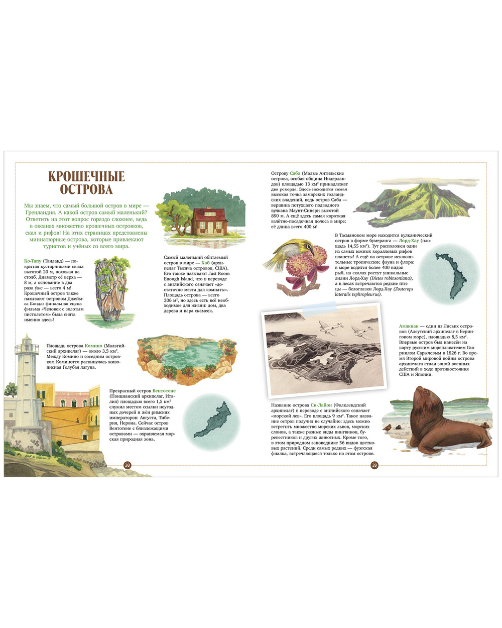 На нашей планете около 500 тысяч островов – огромных и крошечных, необитаемых и застроенных небоскребами, покрытых ледниками и лесами. И у каждого из них своя история открытия, уникальный животный и растительный мир. На страницах этой энциклопедии вы раскроете тайны самых удивительных островов планеты.