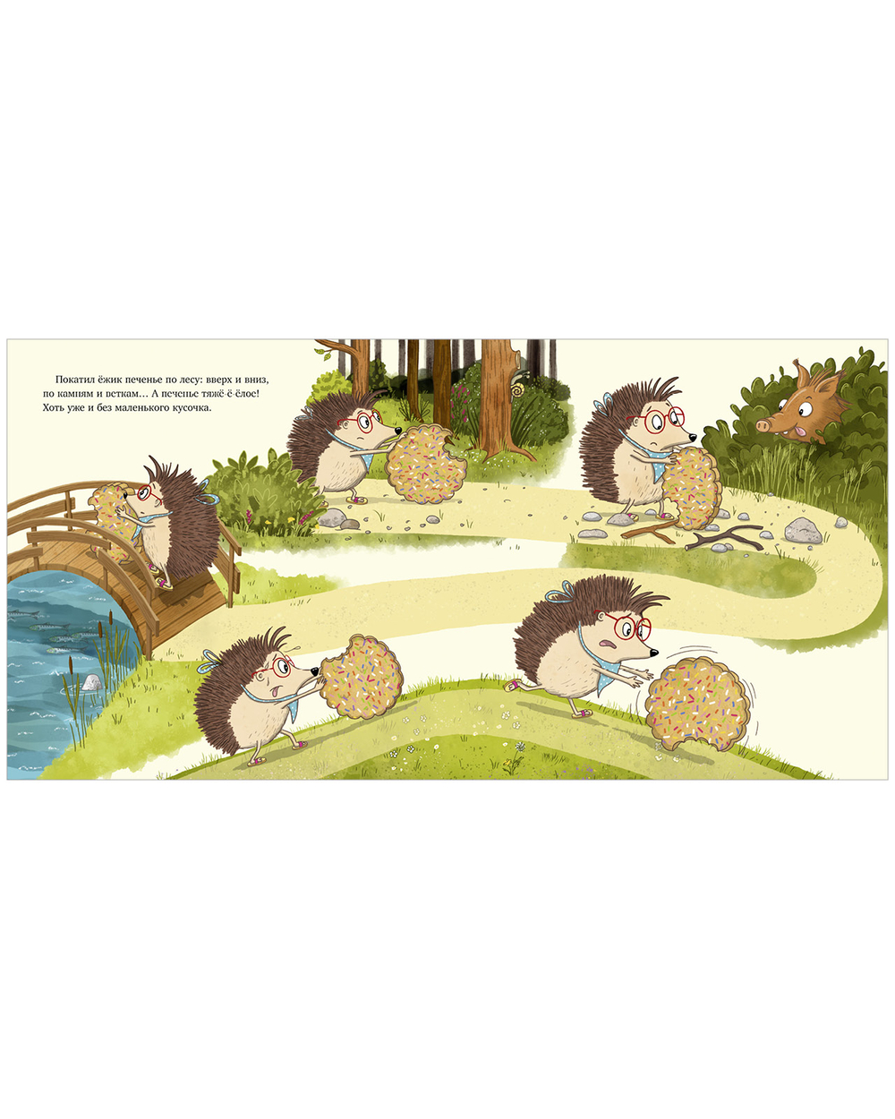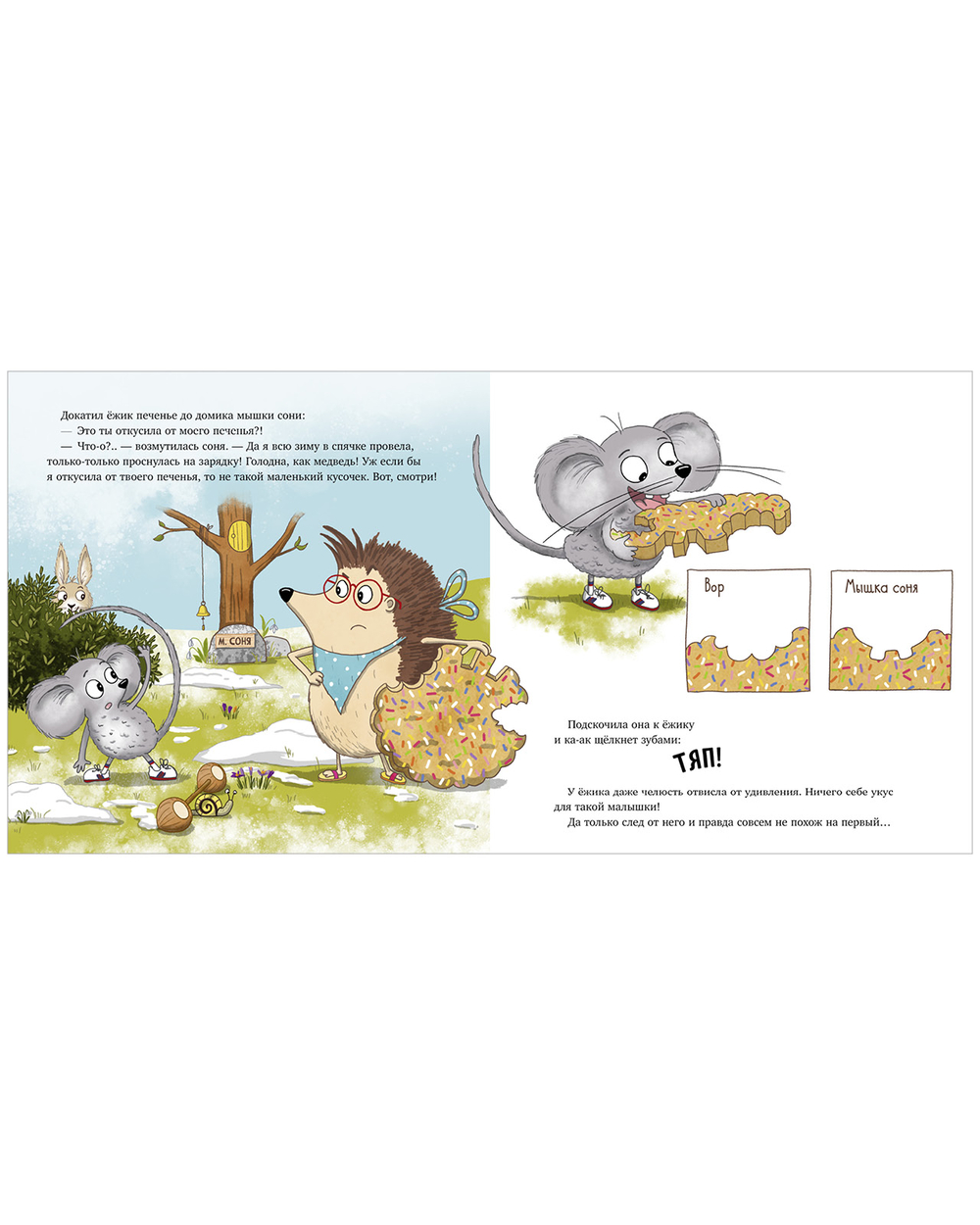Одним прекрасным утром маленький ежик нашел у своего порога настоящее сокровище – круглое, разноцветное, аппетитное печенье. Но стоило ему всего на секунду отвернуться, как от лакомства кто‑то откусил кусочек! Под подозрение попал каждый лесной житель… Придется провести расследование.